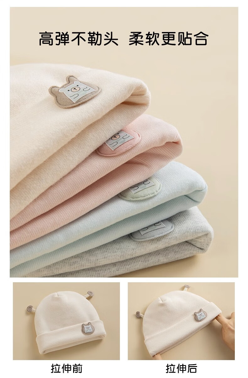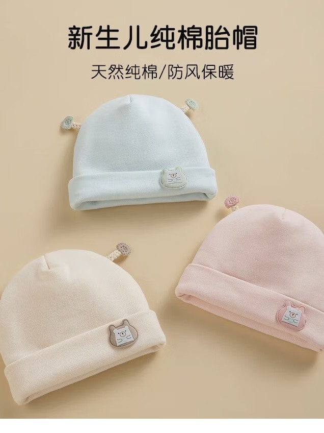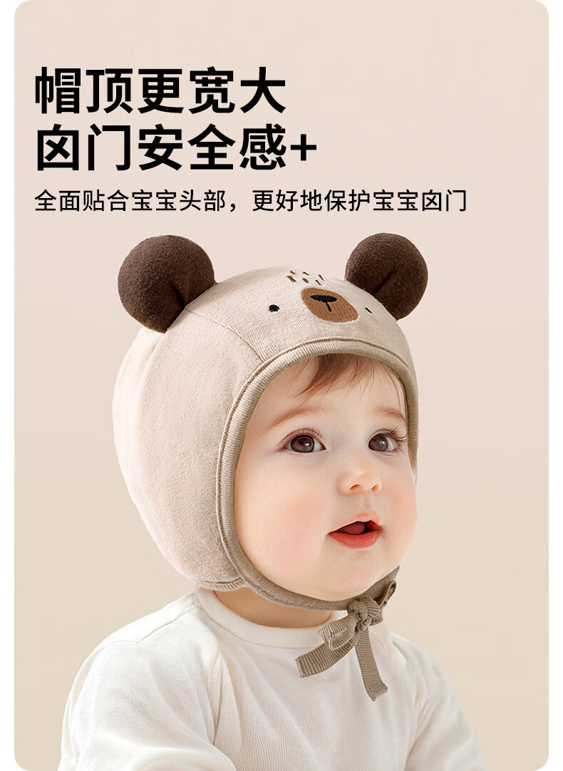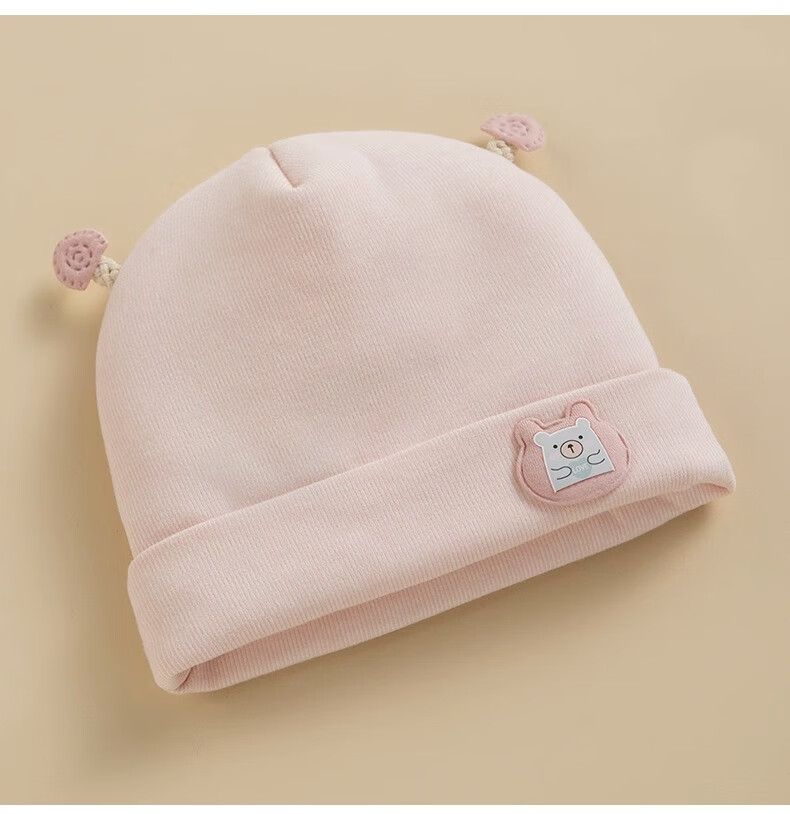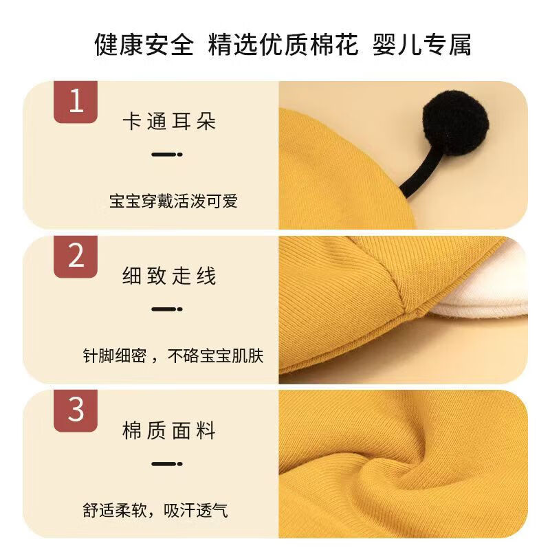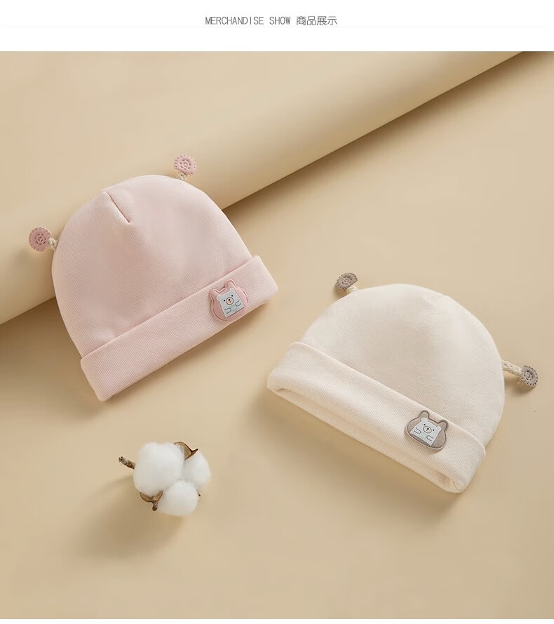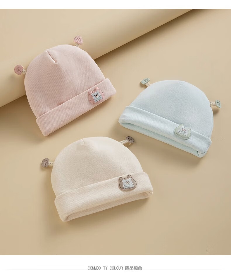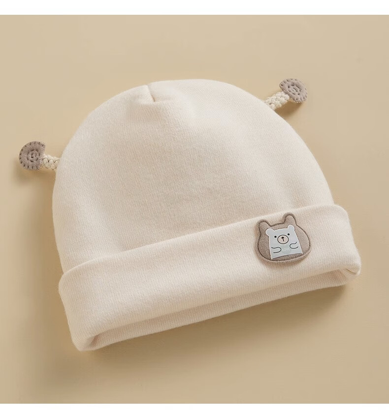 彩虹房子婴儿帽子春秋季新生儿胎帽0-3个月男女宝宝护卤门 小熊耳朵款白色参考0-8个月