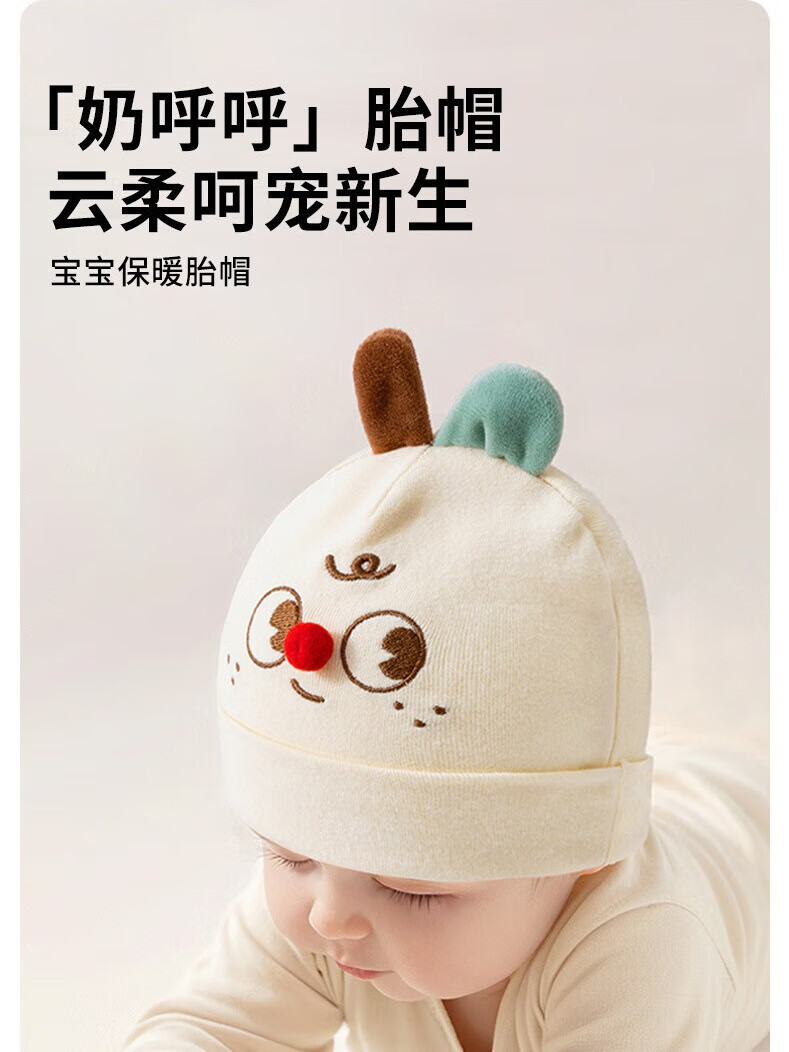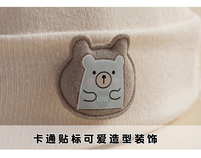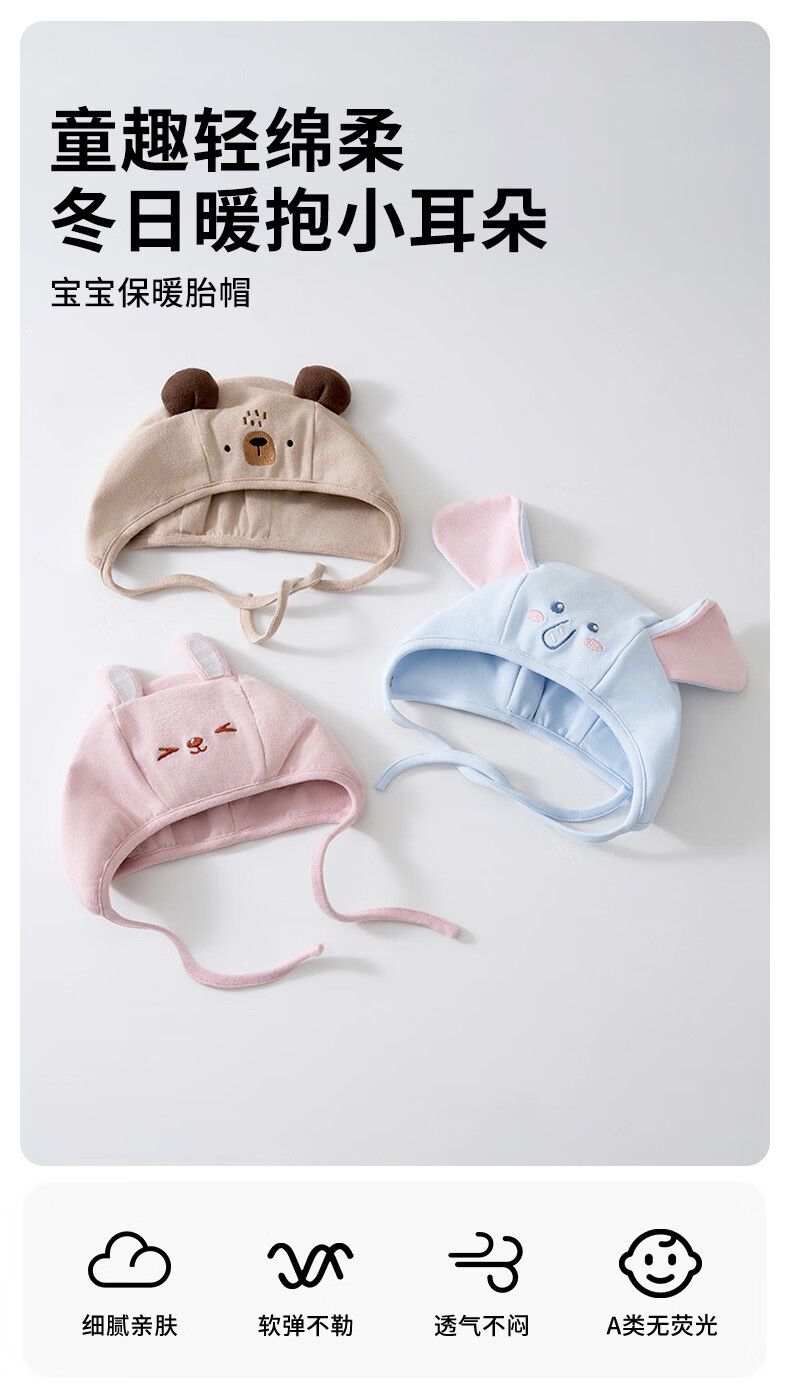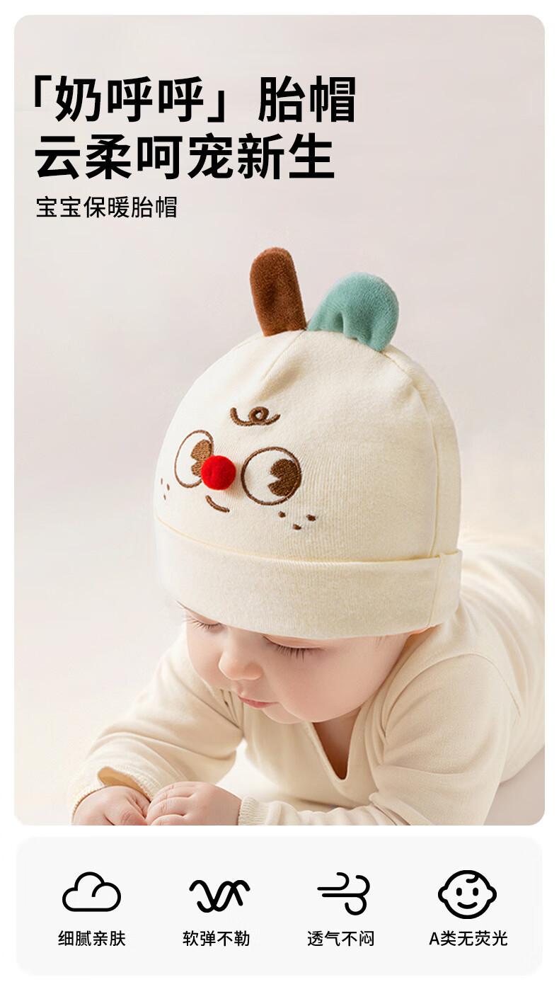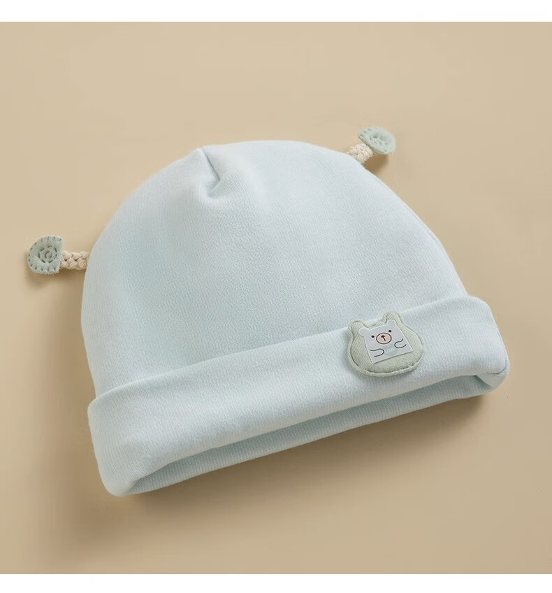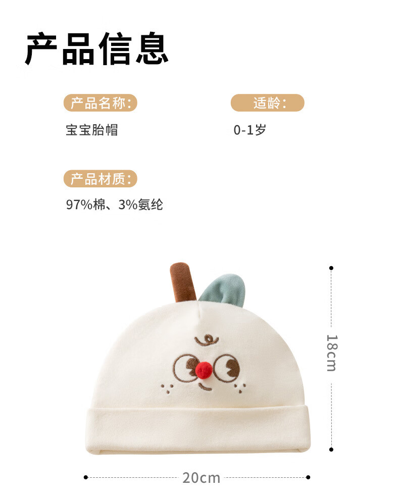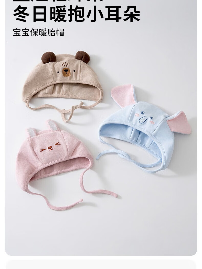 彩虹房子婴儿帽子春秋季新生儿胎帽0-3个月男女宝宝护卤门 小熊耳朵款白色参考0-8个月