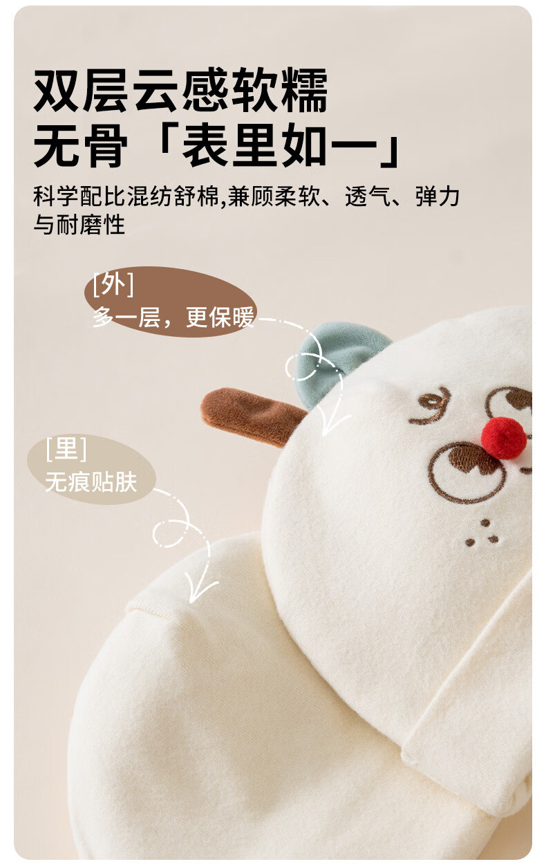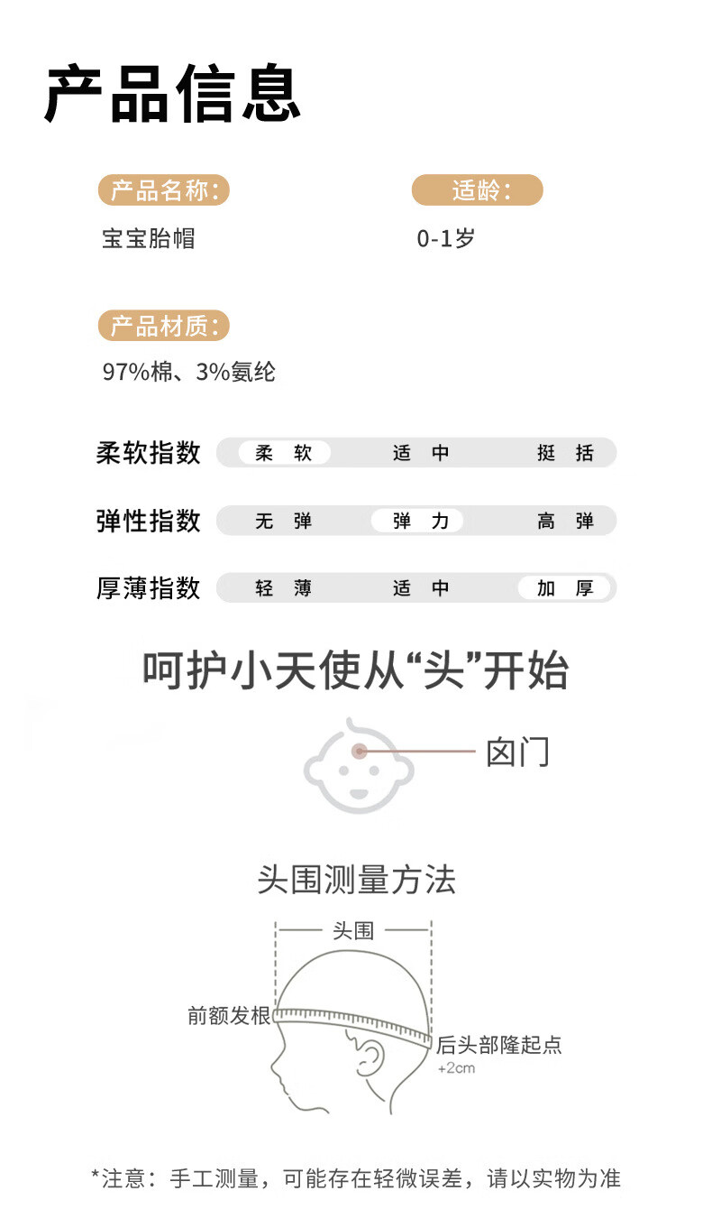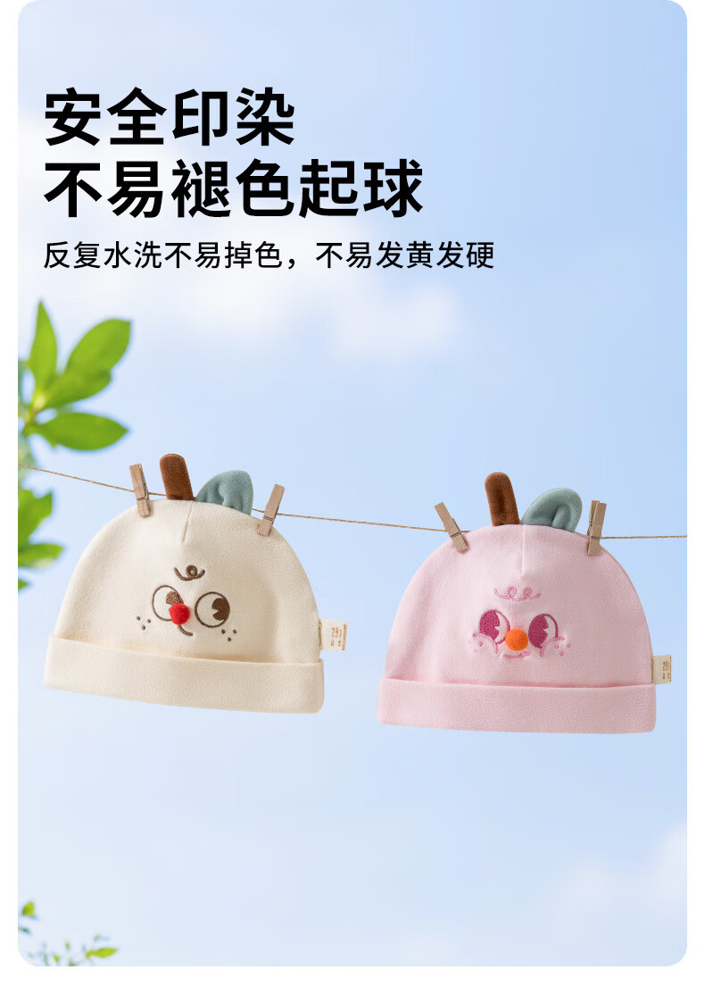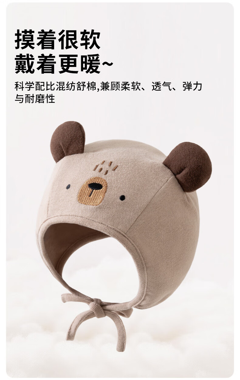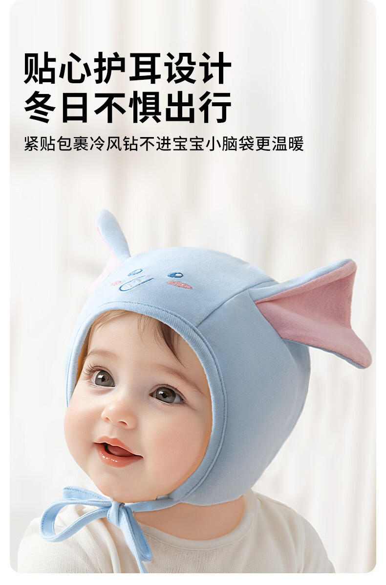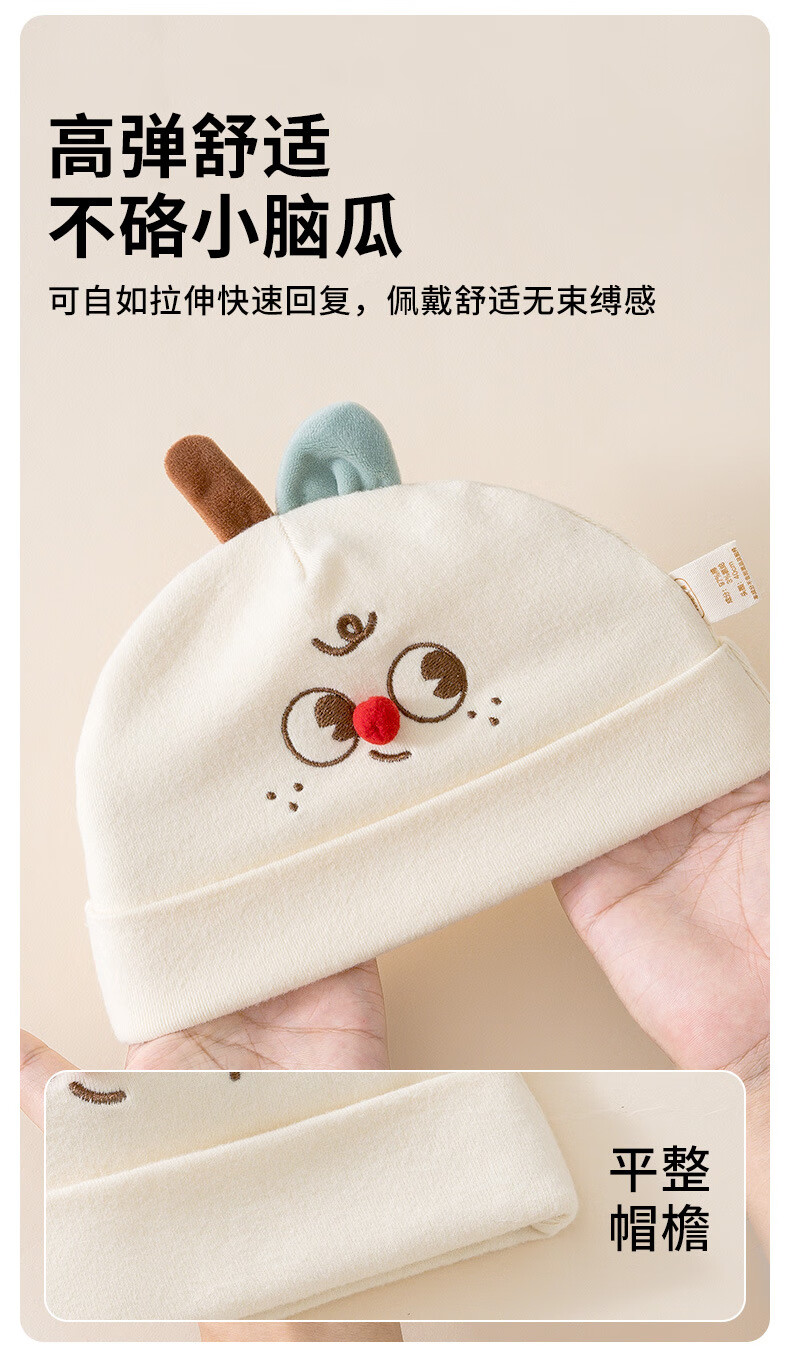 彩虹房子婴儿帽子春秋季新生儿胎帽0-3个月男女宝宝护卤门 小熊耳朵款白色参考0-8个月