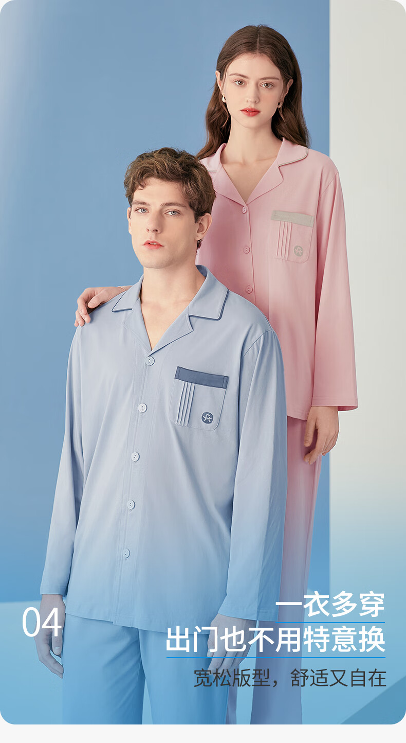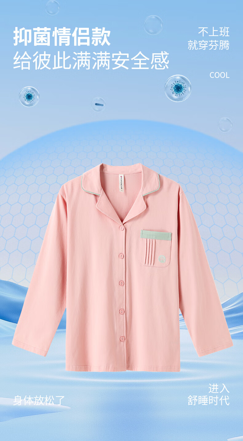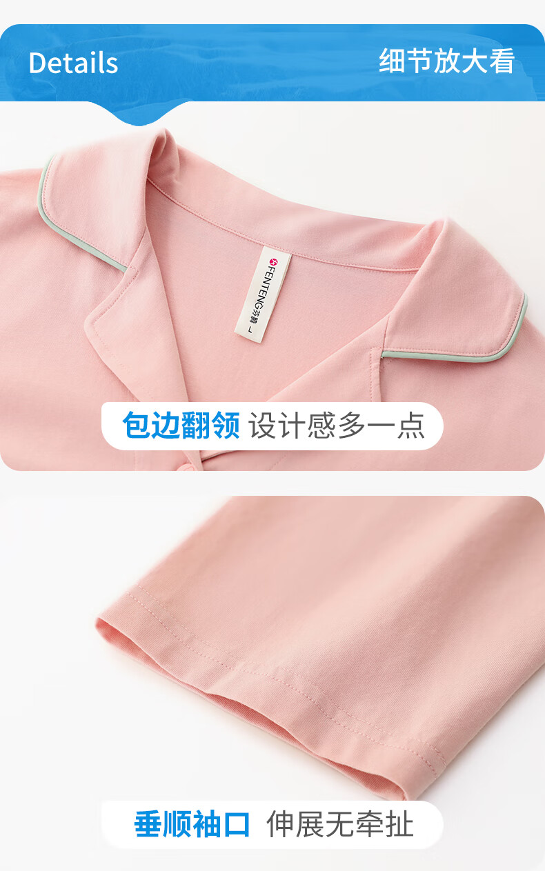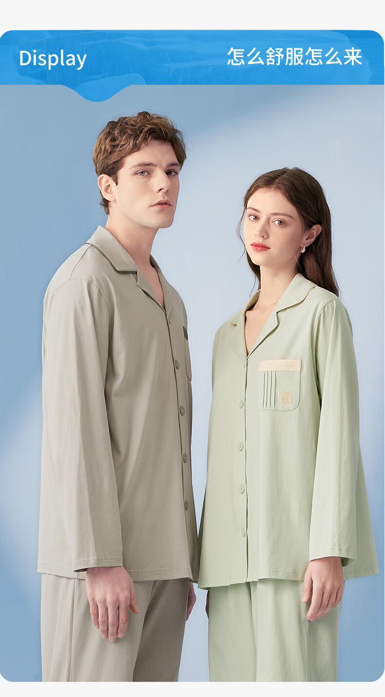 芬腾睡衣女纯棉5A抑菌翻领情侣开衫宽松外穿长袖家居服女睡衣套装 浅绿 2XL