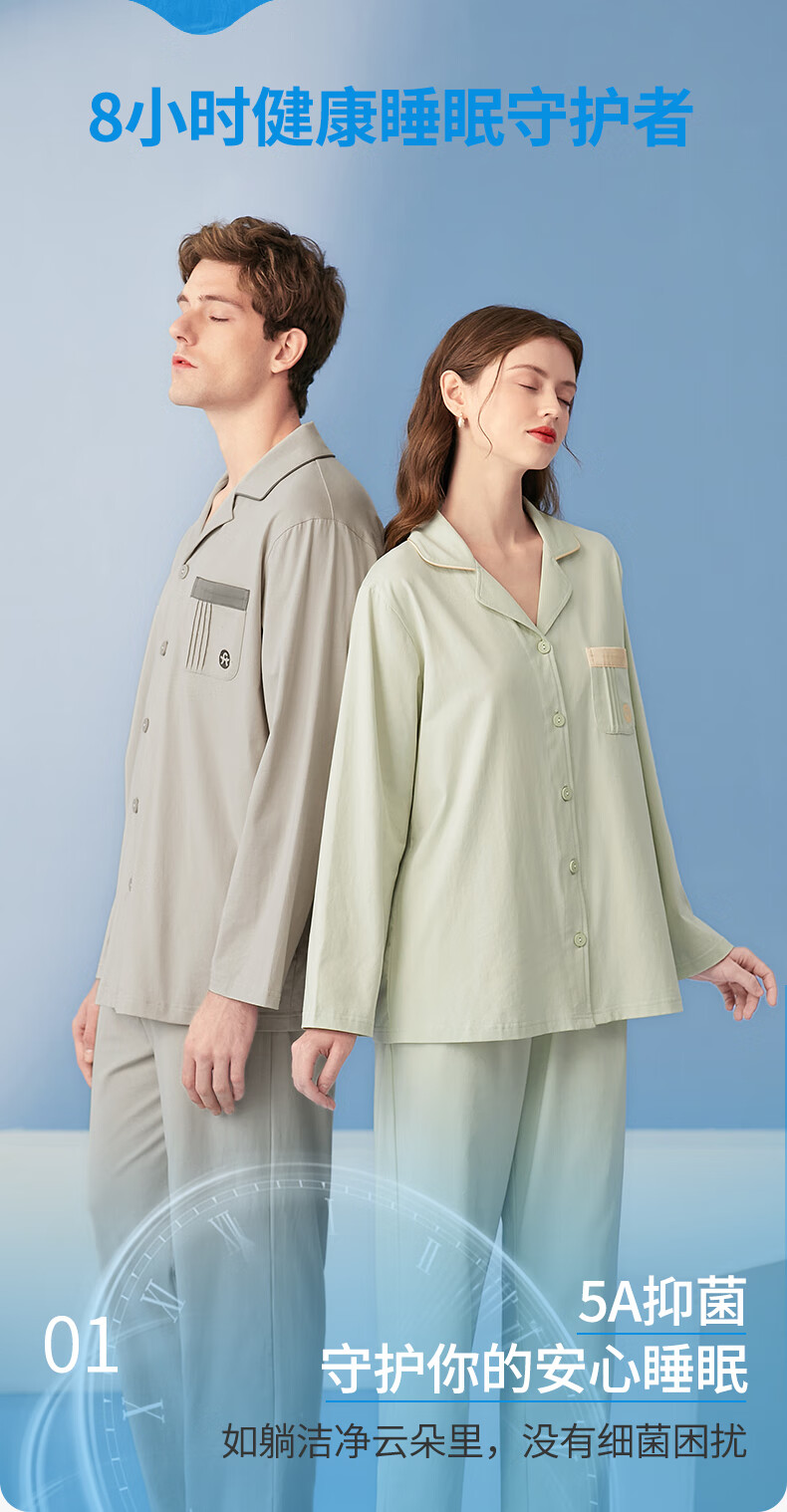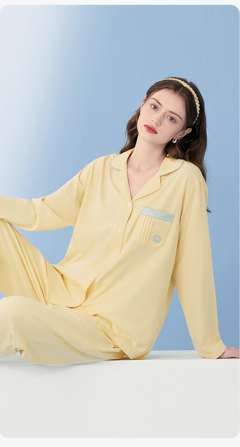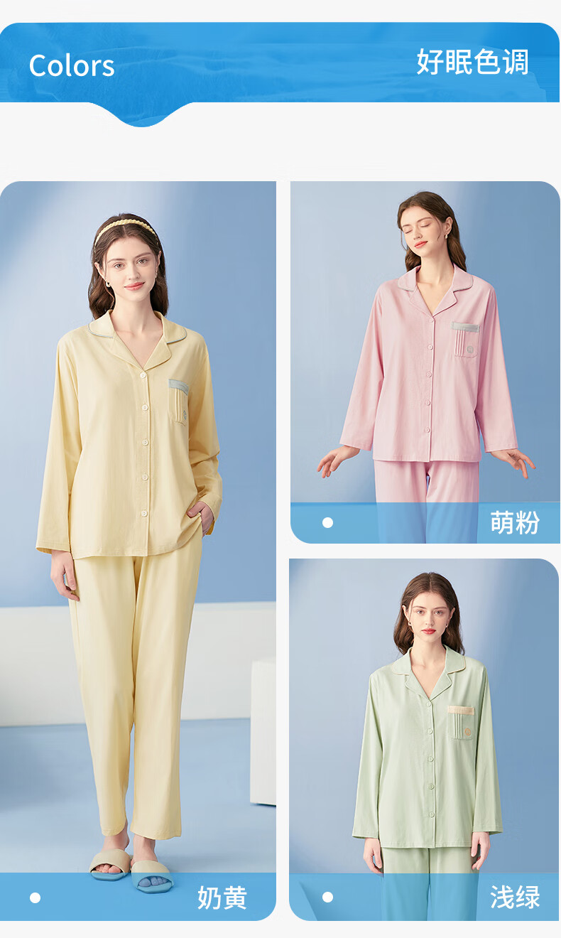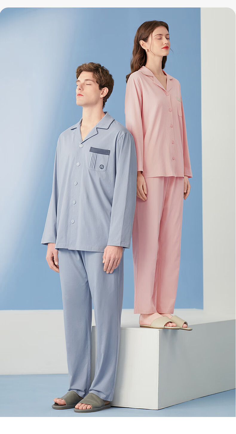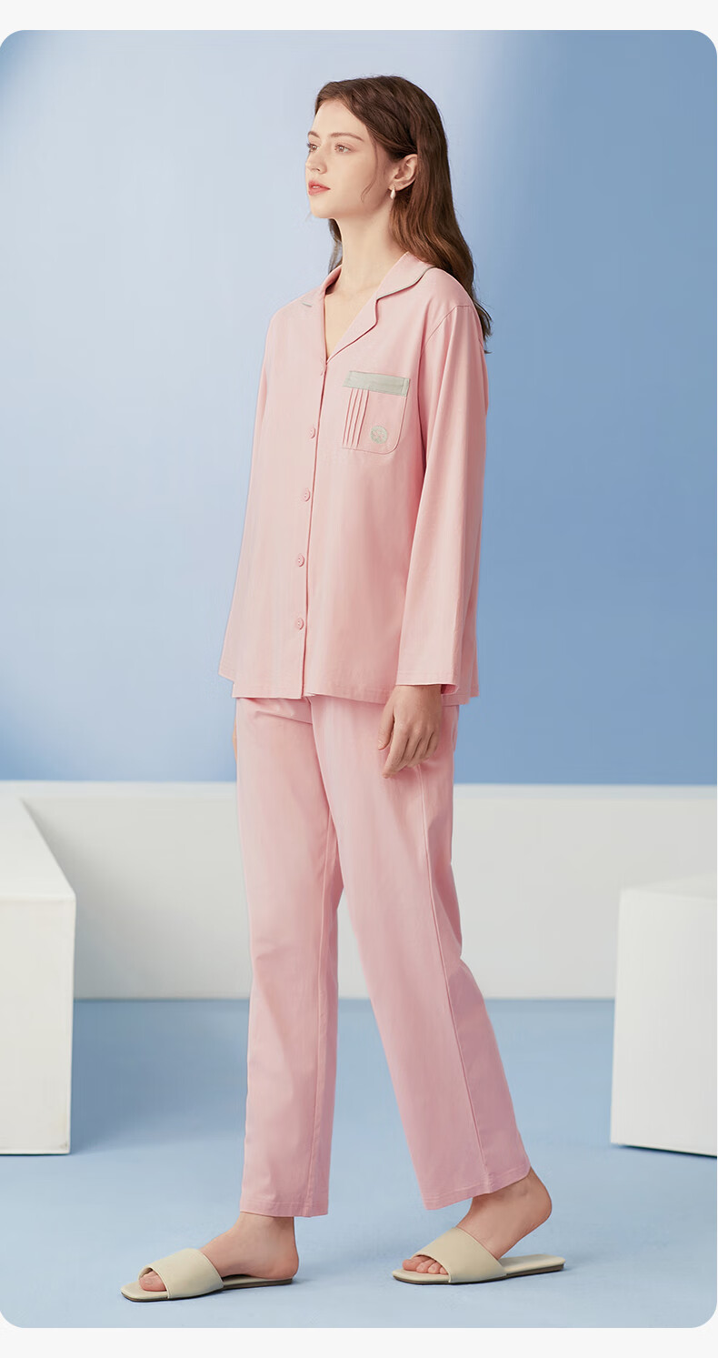 芬腾睡衣女纯棉5A抑菌翻领情侣开衫宽松外穿长袖家居服女睡衣套装 浅绿 2XL