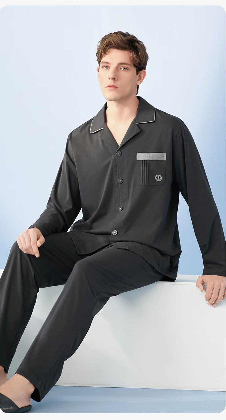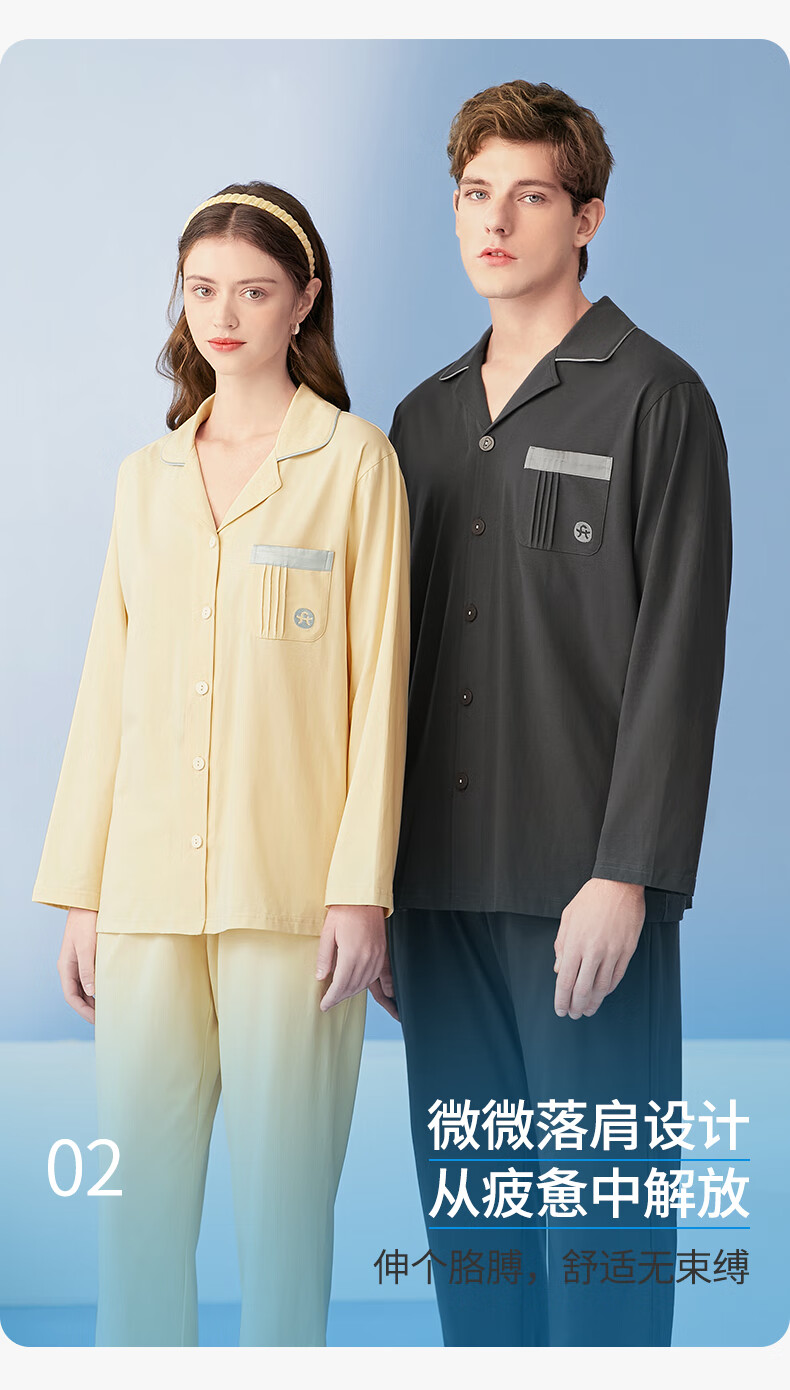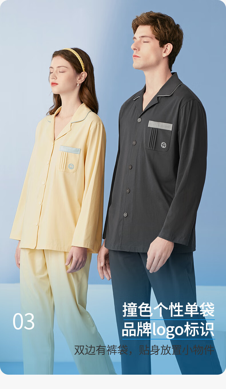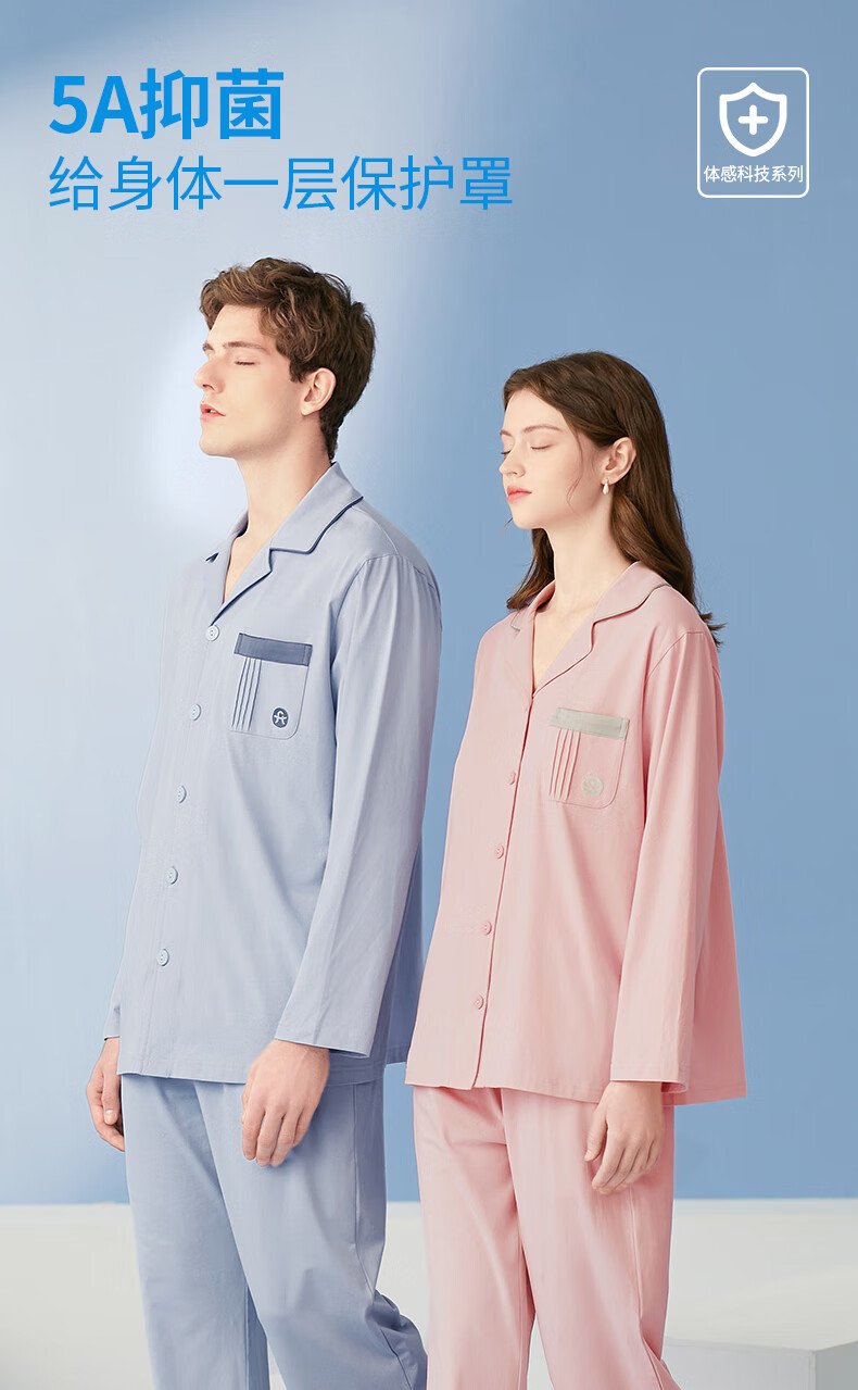 芬腾睡衣女纯棉5A抑菌翻领情侣开衫宽松外穿长袖家居服女睡衣套装 浅绿 2XL