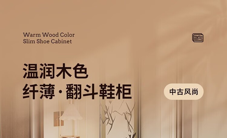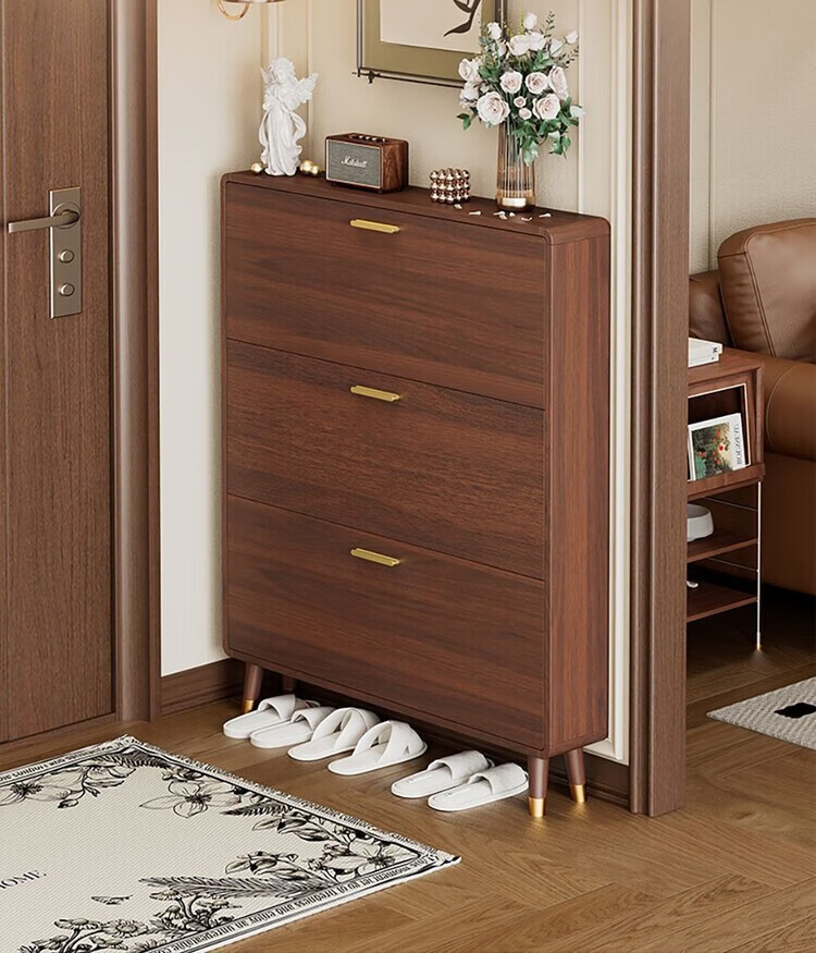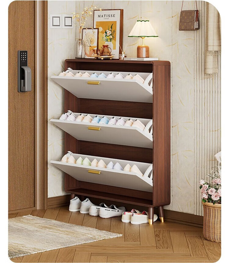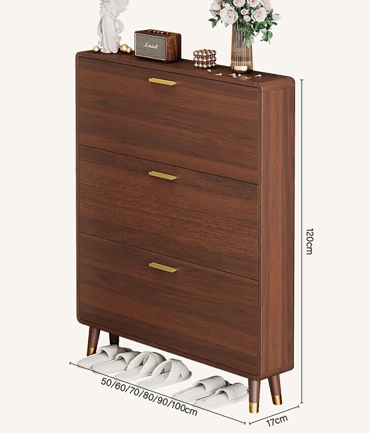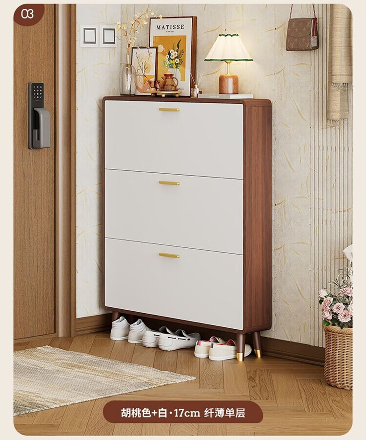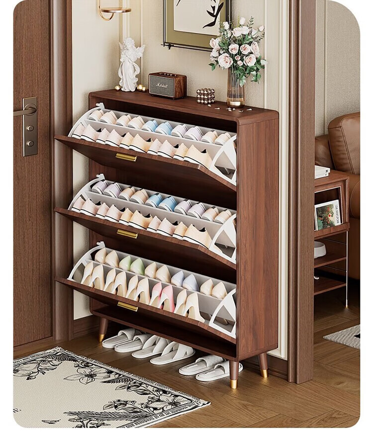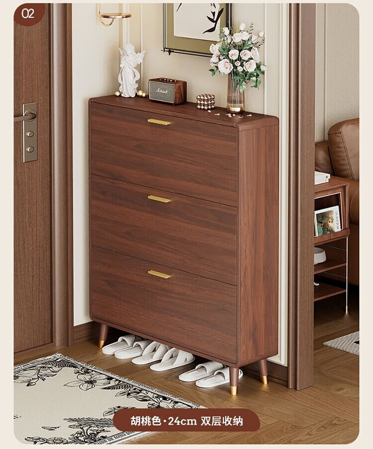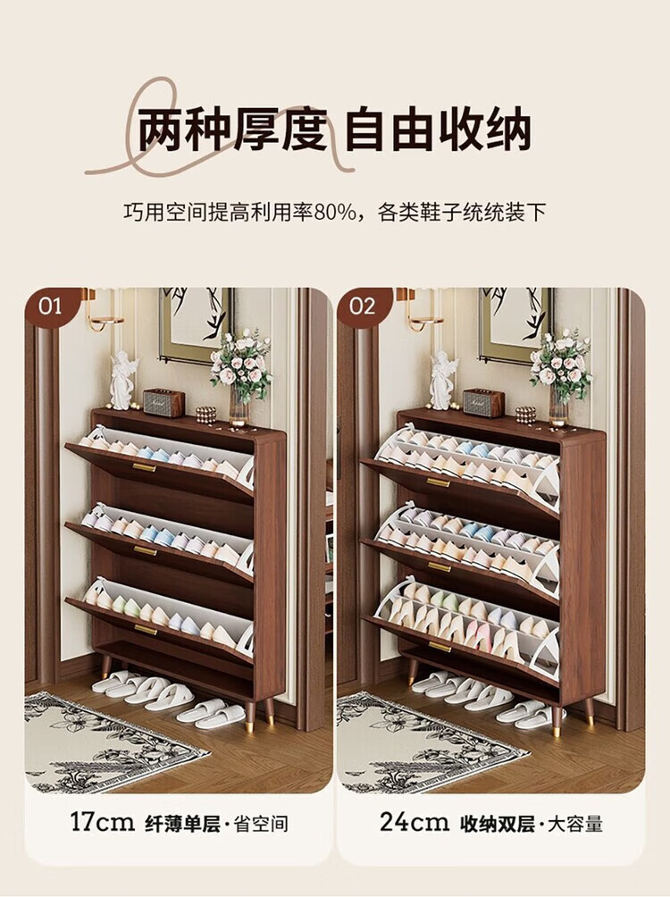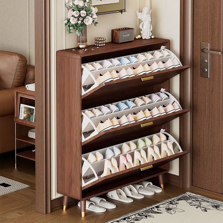 倘然之家新中式翻斗鞋柜家用门口室内新款2025入户玄关柜一体鞋架 胡桃色 50长17厚120高