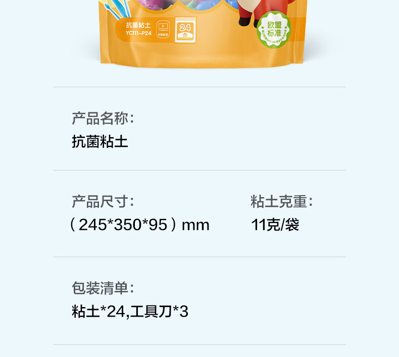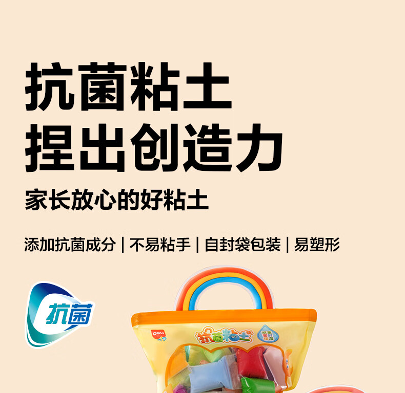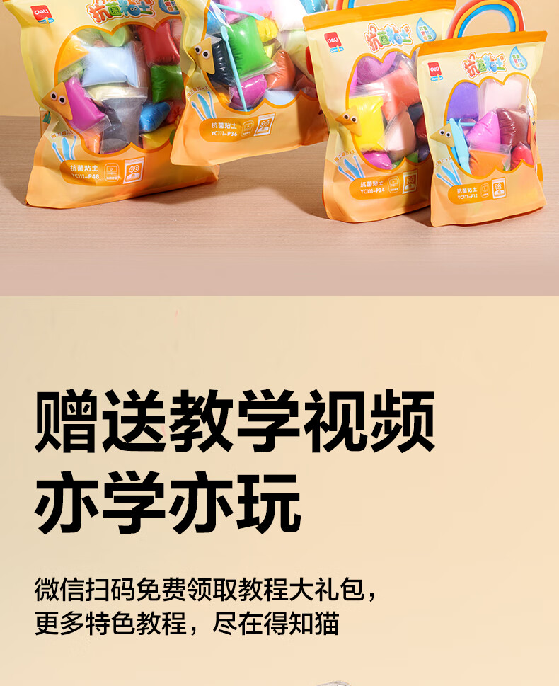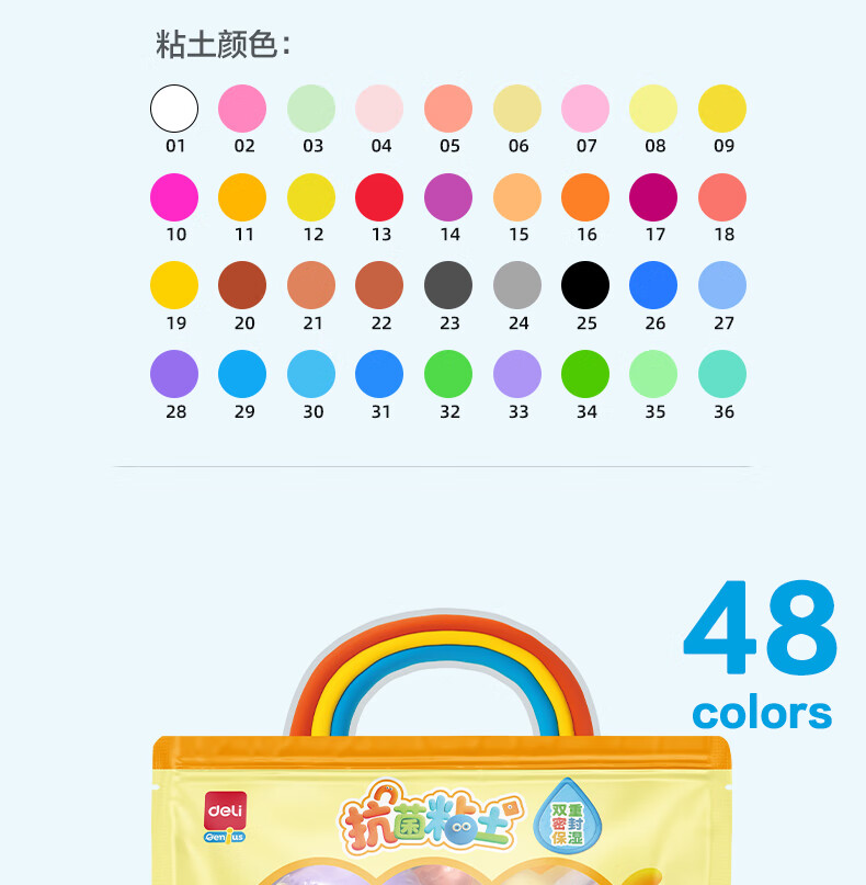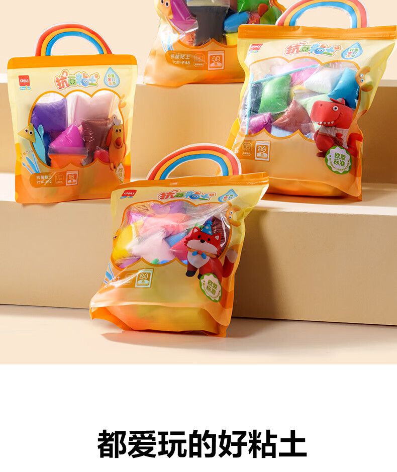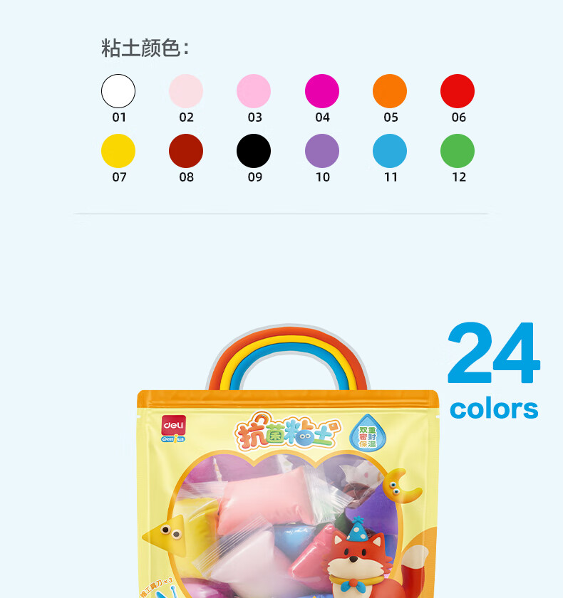 得力抗菌彩泥超轻粘土大克重橡皮泥黏土欧盟标准粘土小学生专用超级粘土超轻粘土大包装 【24色抗菌】11g大包装-1包顶3包
