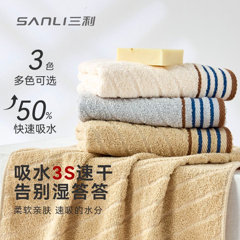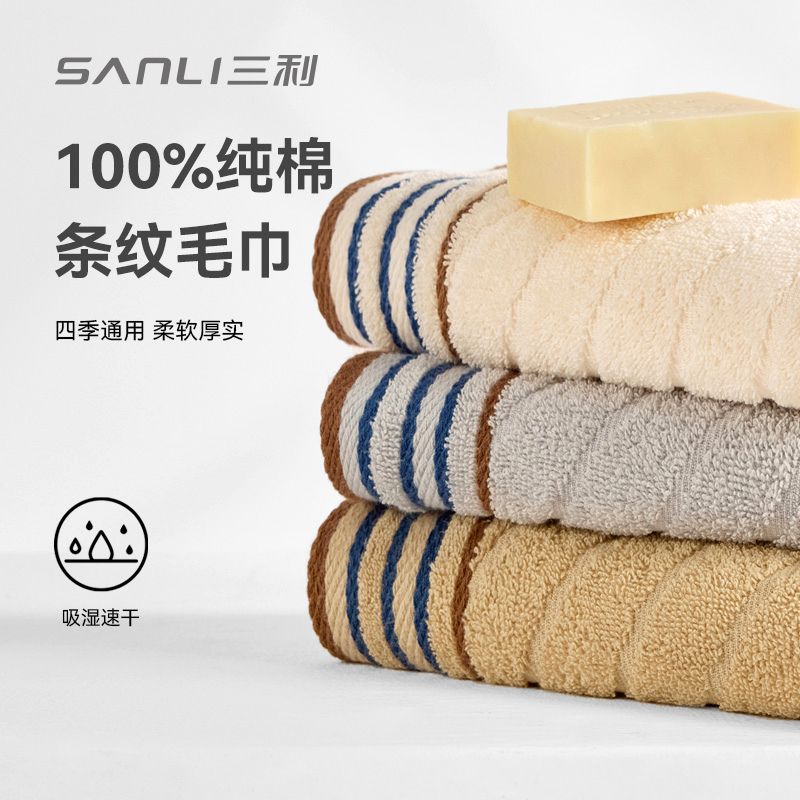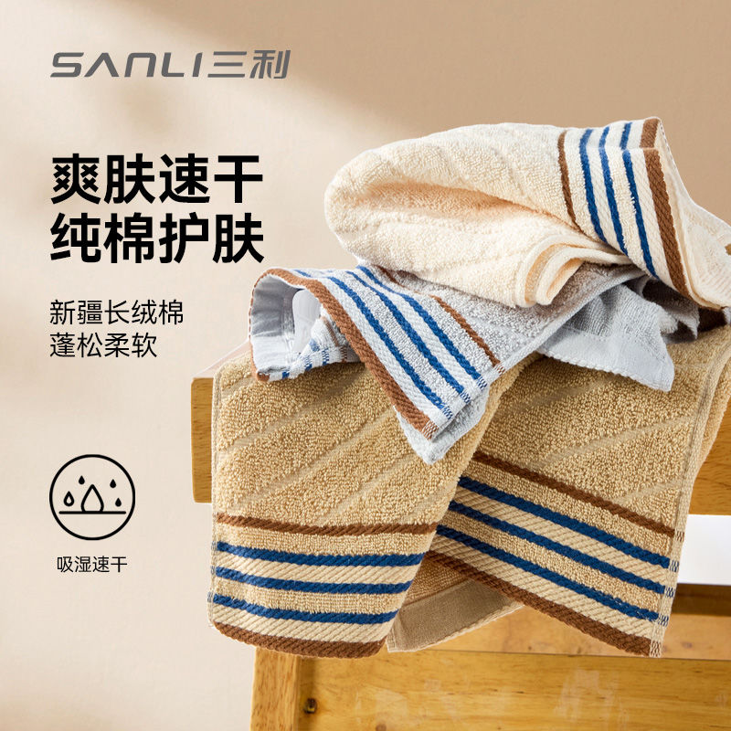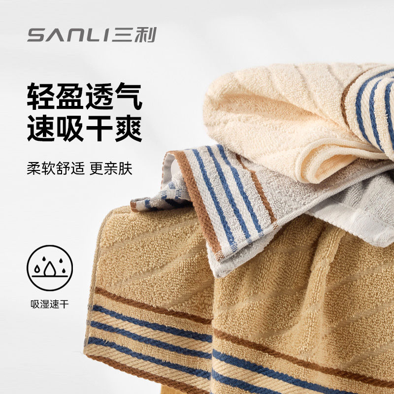 三利毛巾大人纯棉吸水速干洗脸手巾全棉一等品不掉毛洗澡a类家用