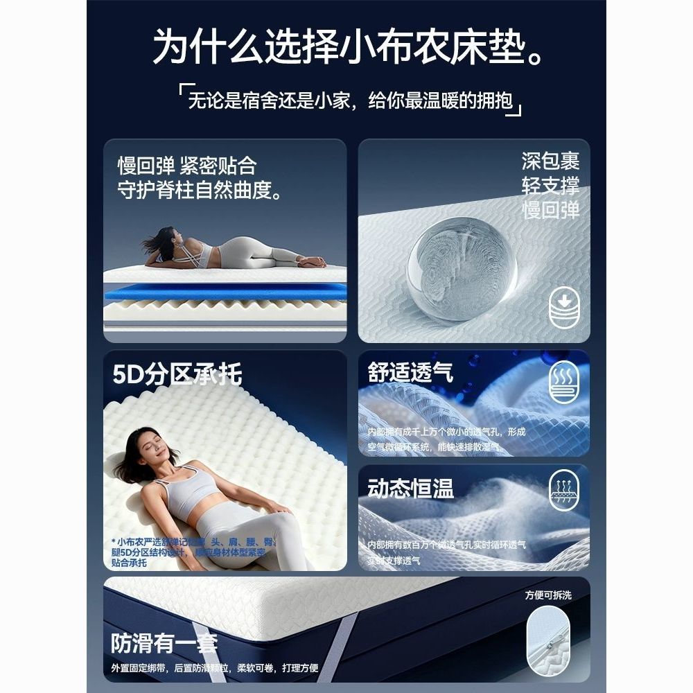 小布农竹炭款10 -15cm记忆棉席梦思厚床垫榻榻米舒适家用租房必备