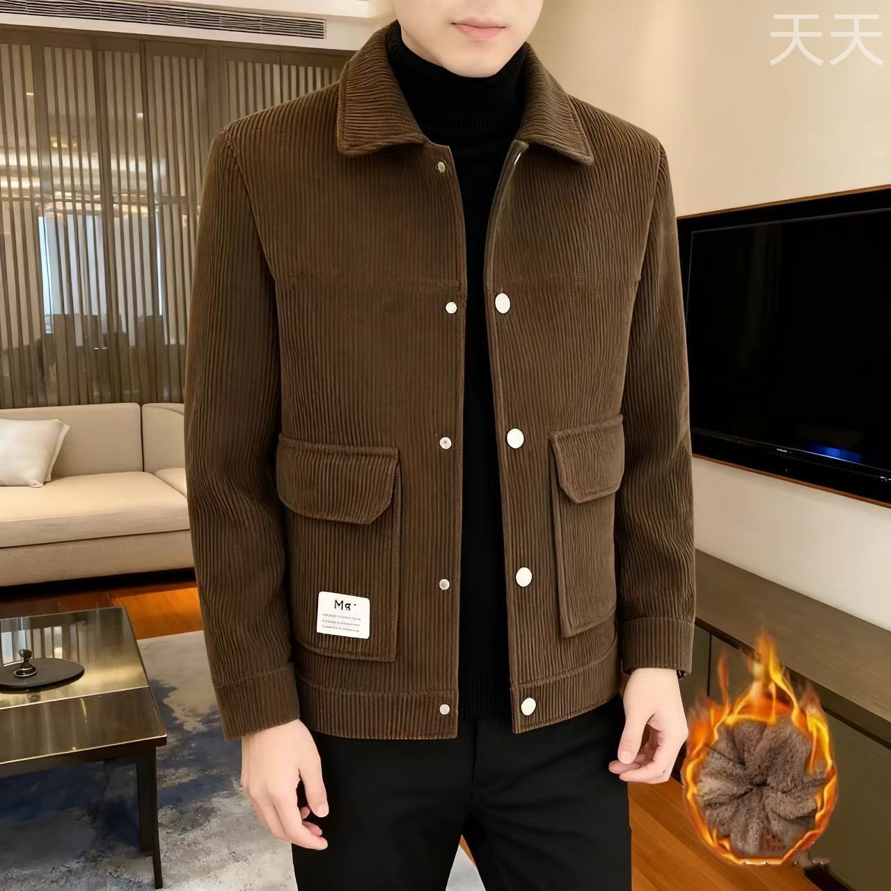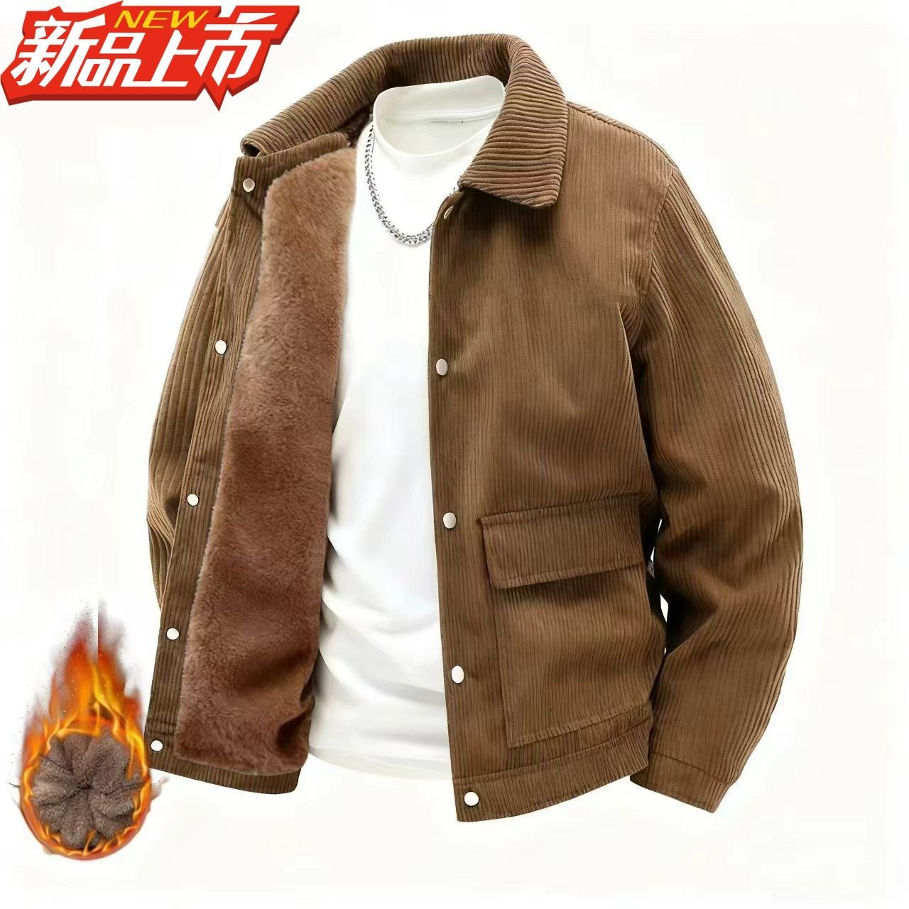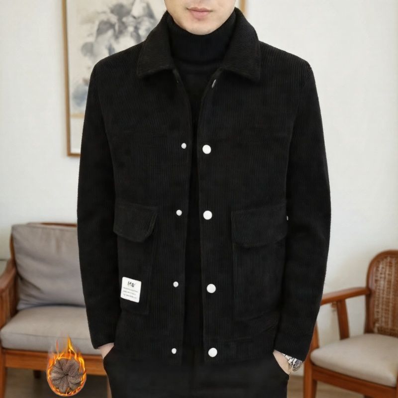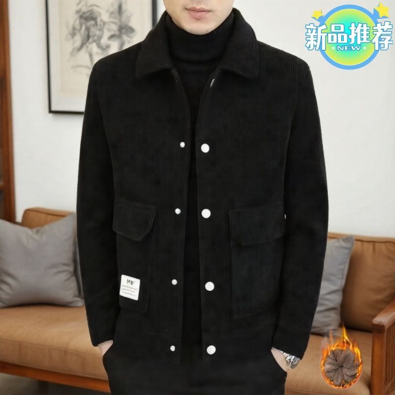 大牌清仓高档男士灯芯绒新款潮流外套翻领休闲加绒爸爸中年夹克