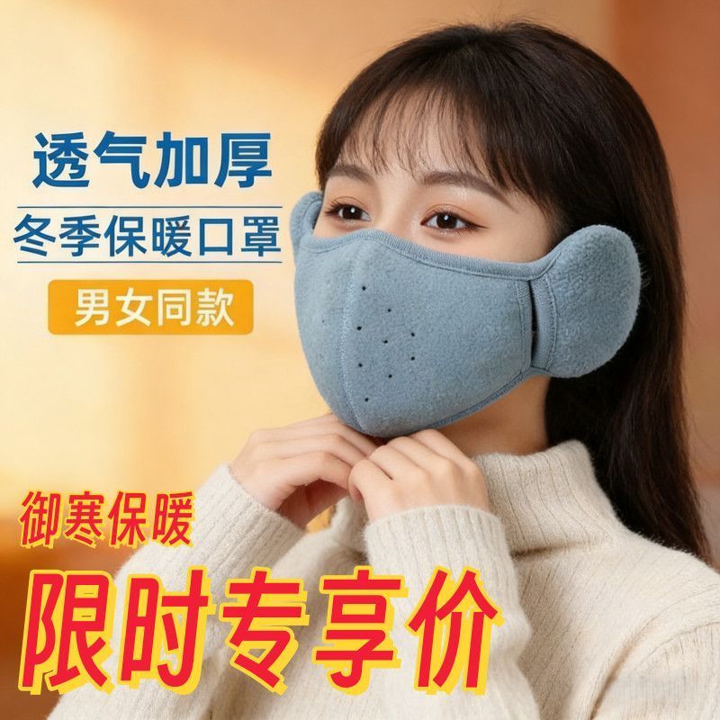 倒计时特惠加厚保暖防风护脸面罩加耳罩三合一透气骑行上学通用