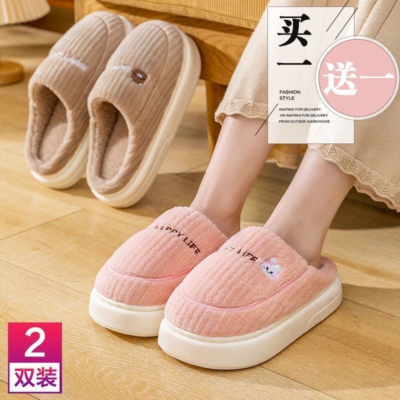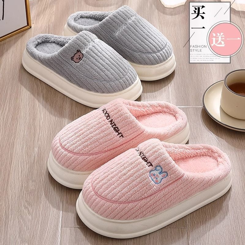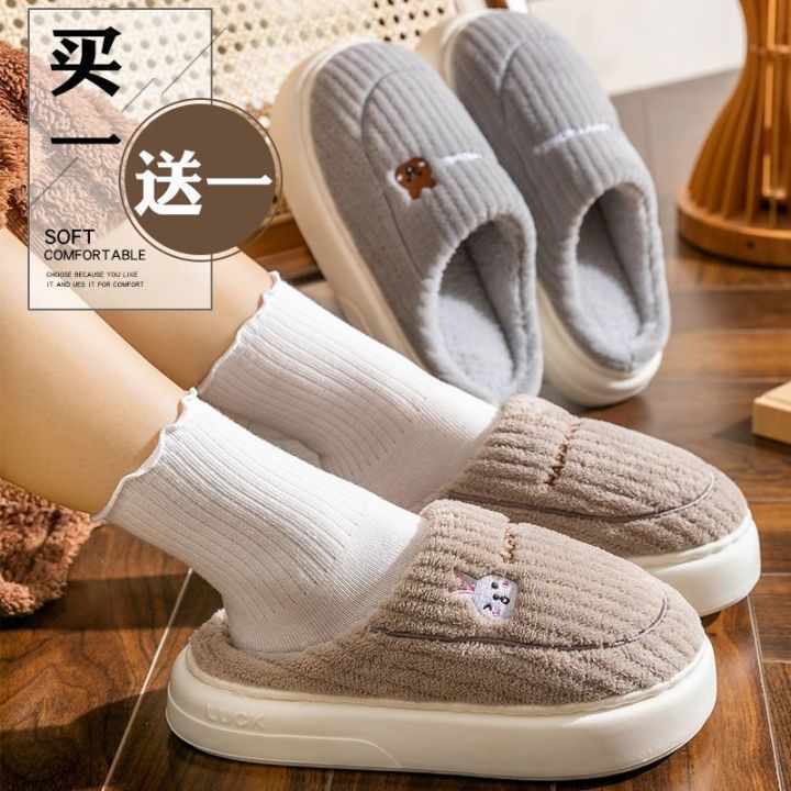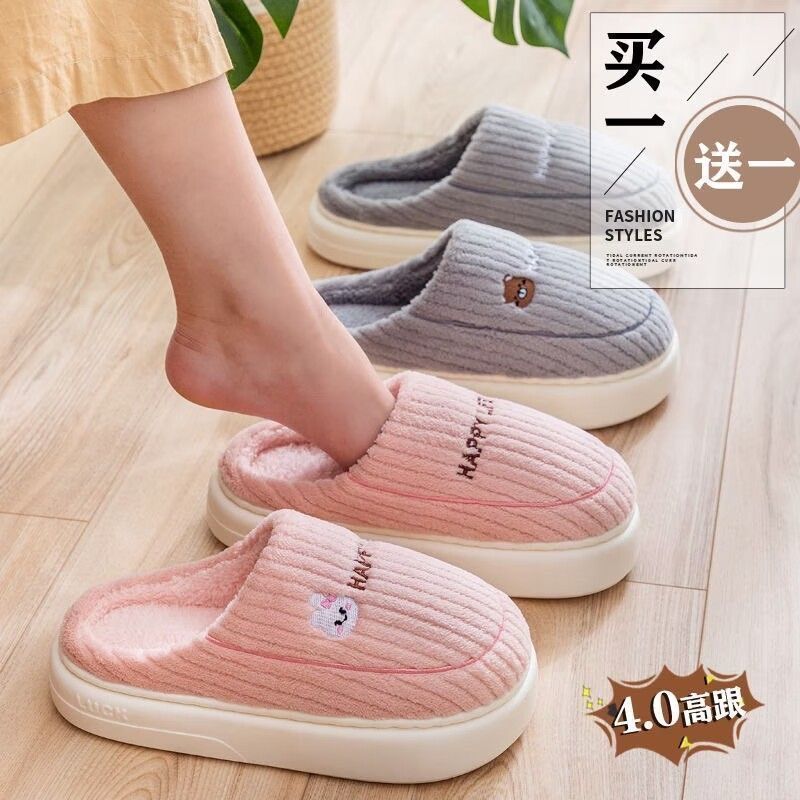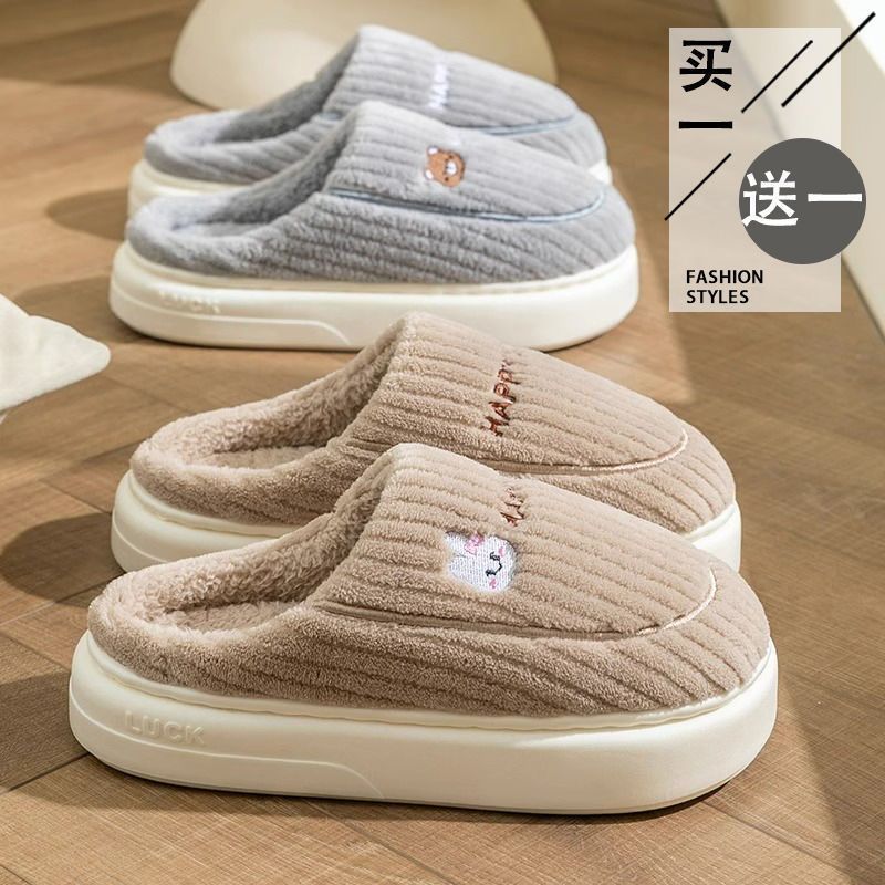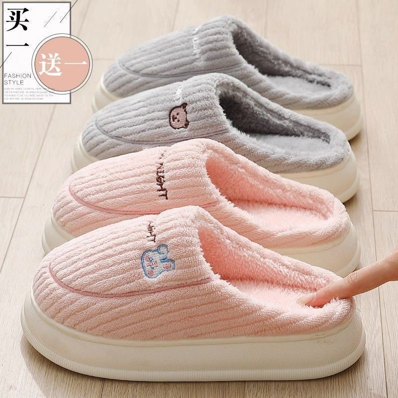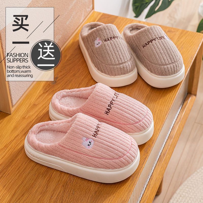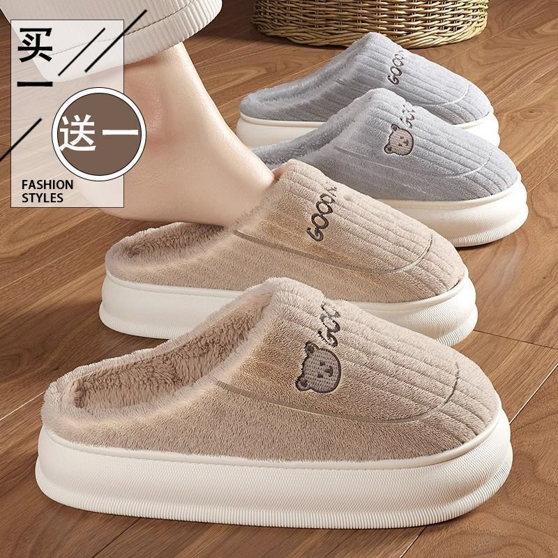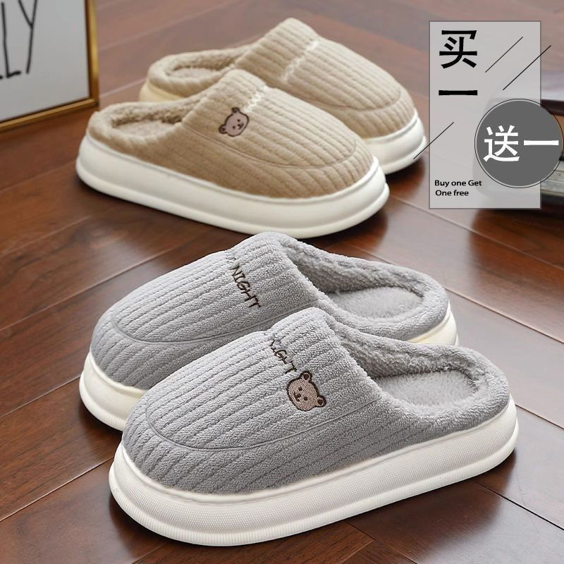买一送一娅谱棉拖鞋冬季情侣居家用防滑厚底加绒保暖拖鞋男