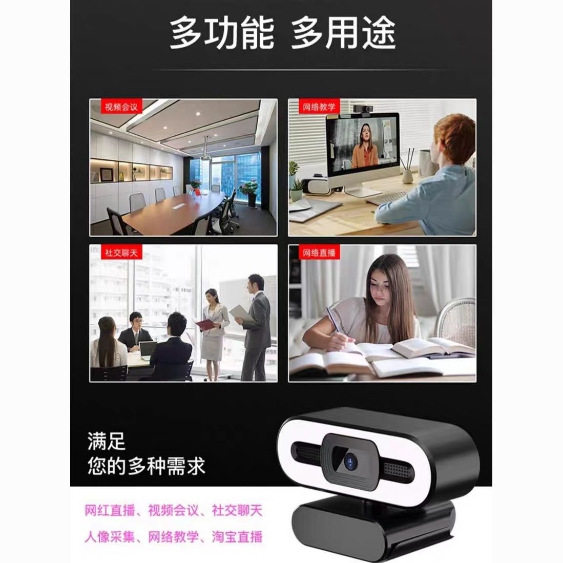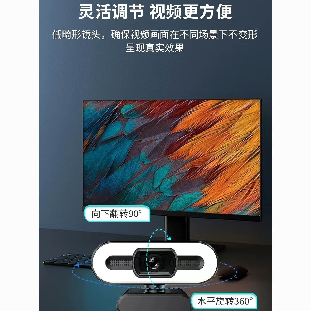 4K高清补光灯摄像头电脑USB美颜直播会议笔记本台式麦克风网课