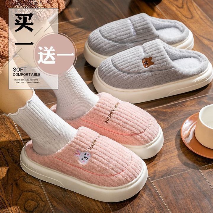 娅谱yaaipuzp棉拖鞋冬季情侣居家用防滑厚底加绒保暖拖鞋男