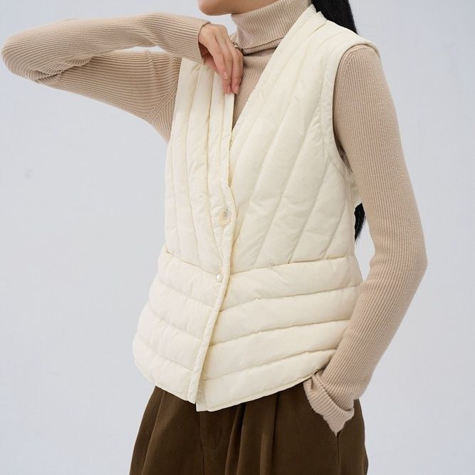 90白鸭绒秋冬新款排骨轻薄羽绒马甲女短款保暖背心羽绒服马夹叠穿