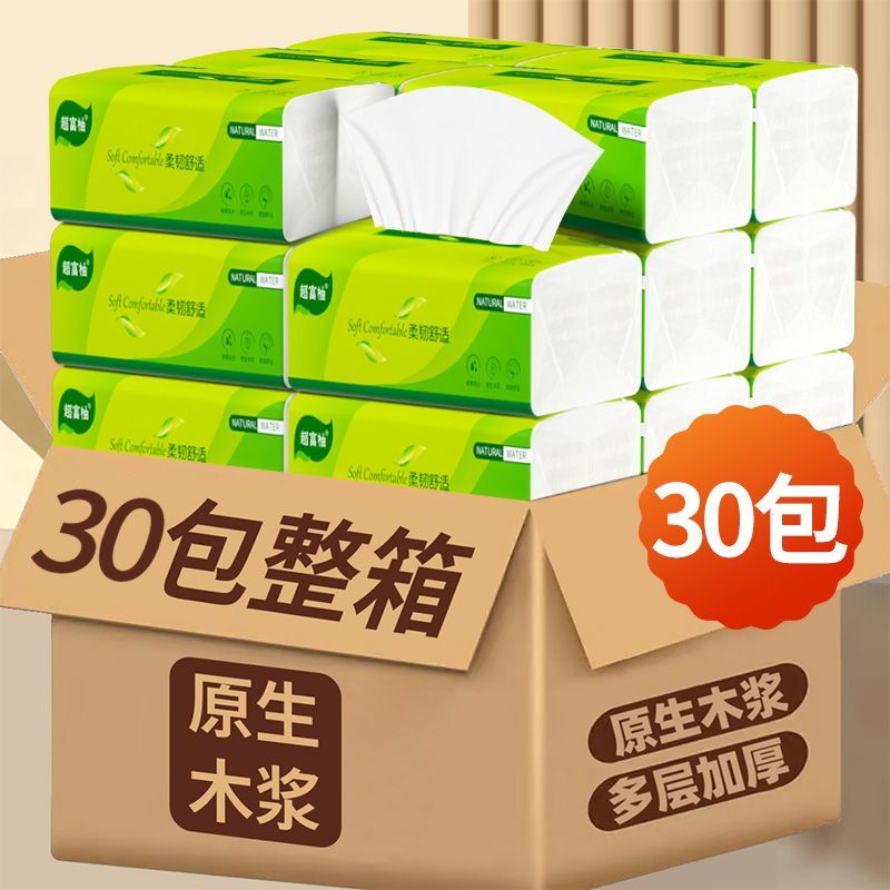 30包特价清仓处理】原木抽纸巾整箱批发家用家庭装卫生纸指纹清洁