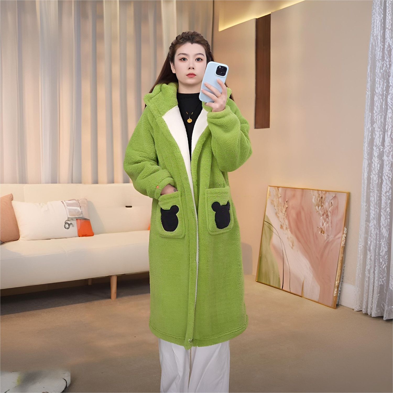 2025年新款冬季保暖家居服套装女士睡衣情侣休闲加厚毛绒连帽