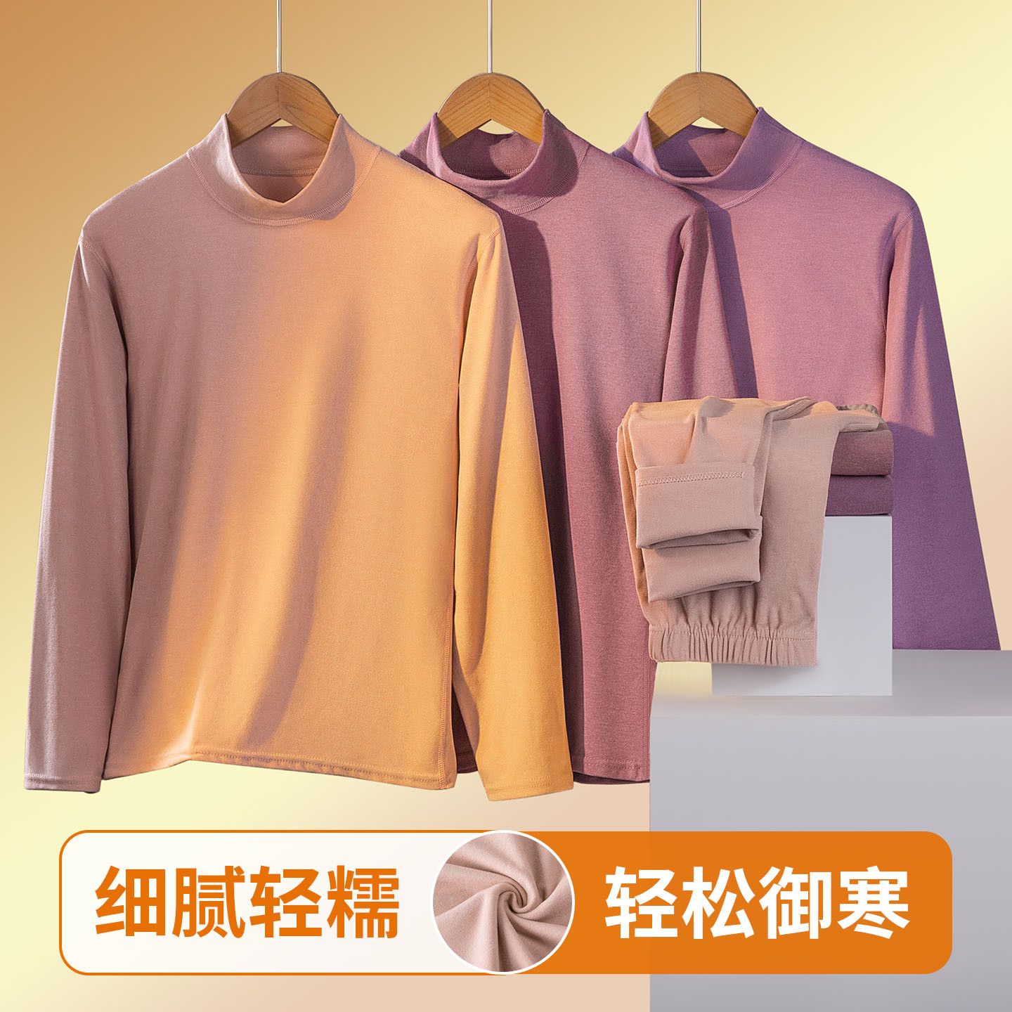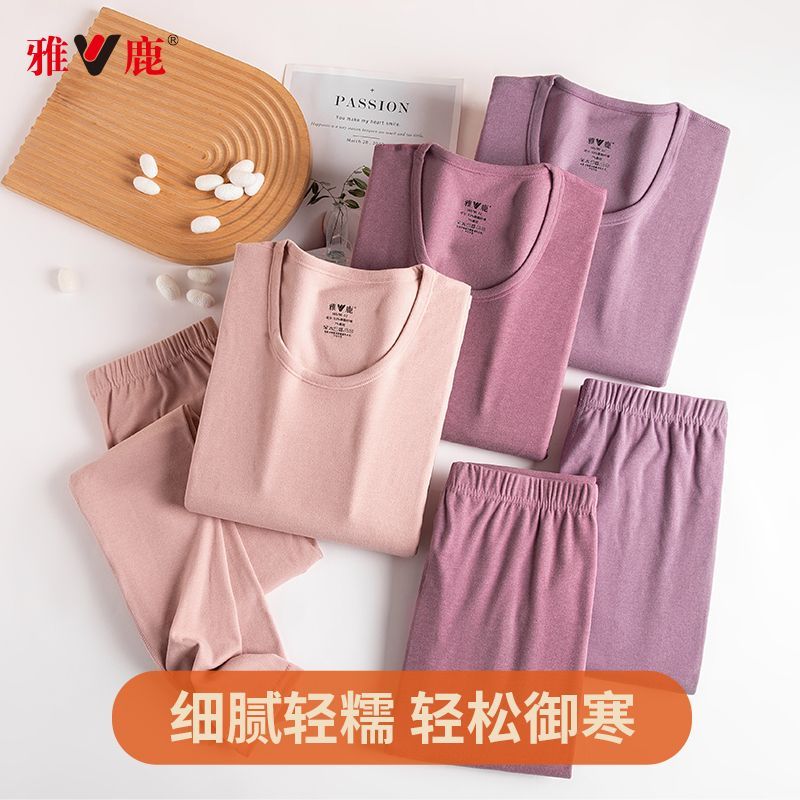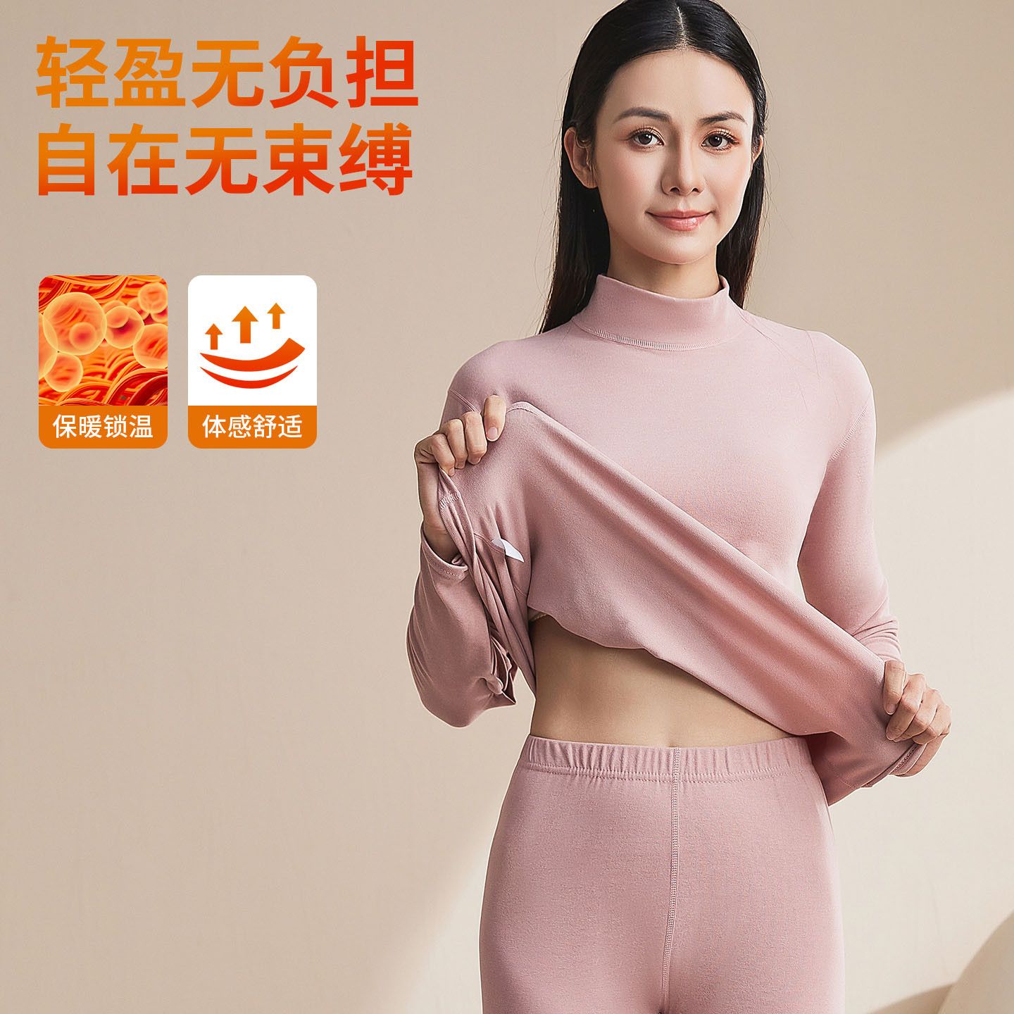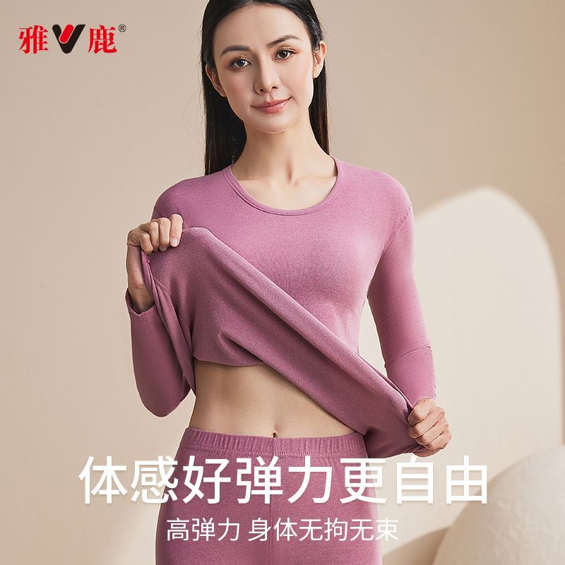 雅鹿女士高领保暖内衣双面磨毛速热自发热打底秋衣秋裤套装秋冬