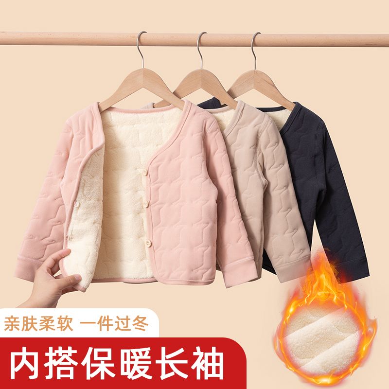 清仓儿童加绒外套秋冬男宝女宝加绒夹棉保暖校服神器三层内搭上衣