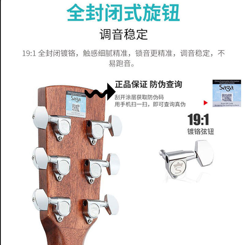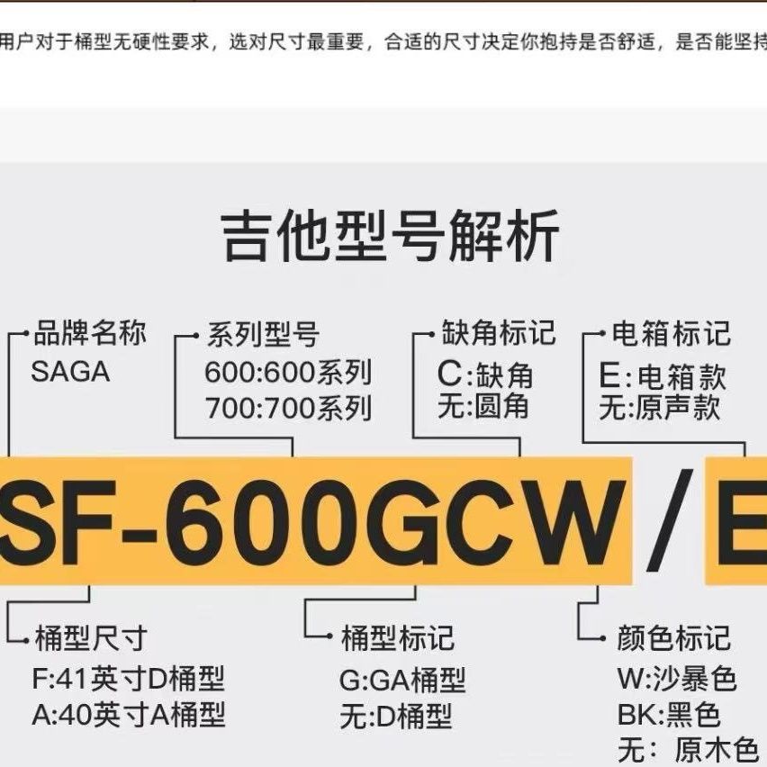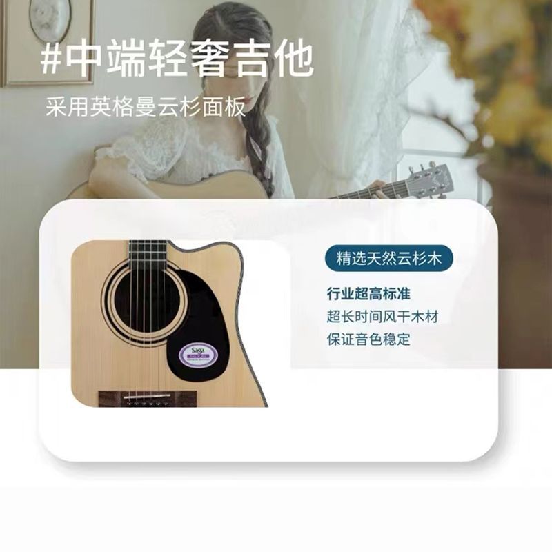 Saga萨伽官方旗舰sf600c初学者入门学生女男民谣木吉他41寸电箱40