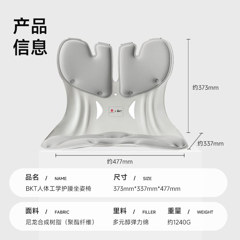 BKT护腰坐垫靠垫坐垫支撑腰椎靠背垫按摩椅办公室缓解腰疼神器