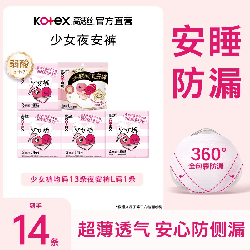 高洁丝安睡裤粘贴式可撕少女裤夜用量大防漏夜安裤安睡裤姨妈裤