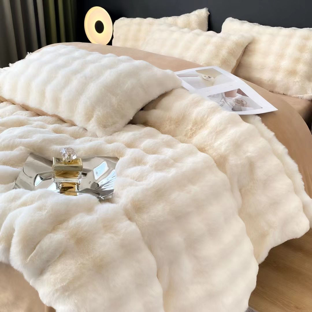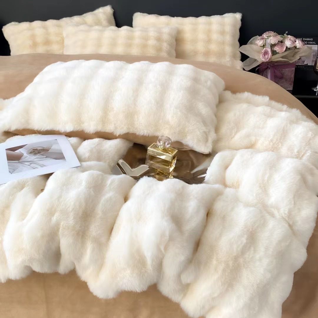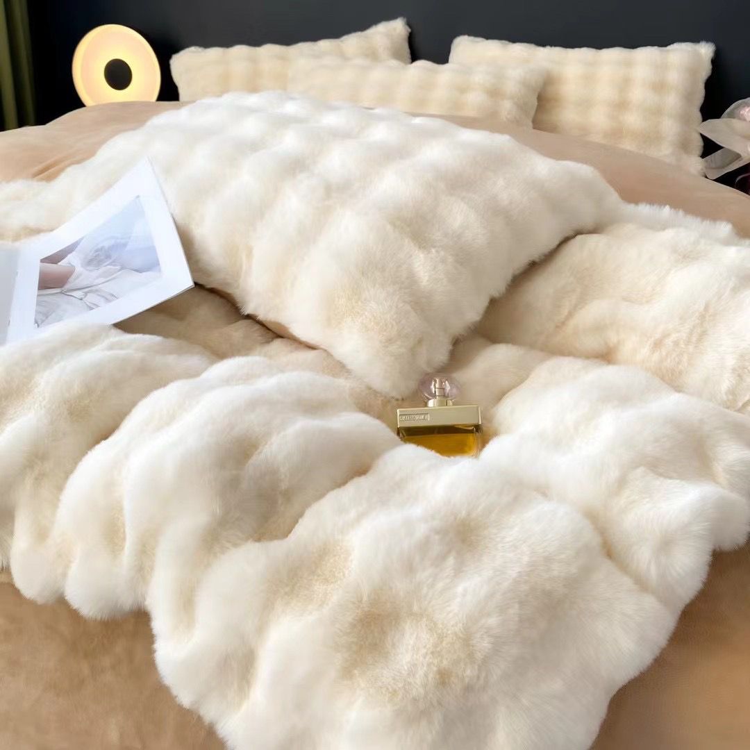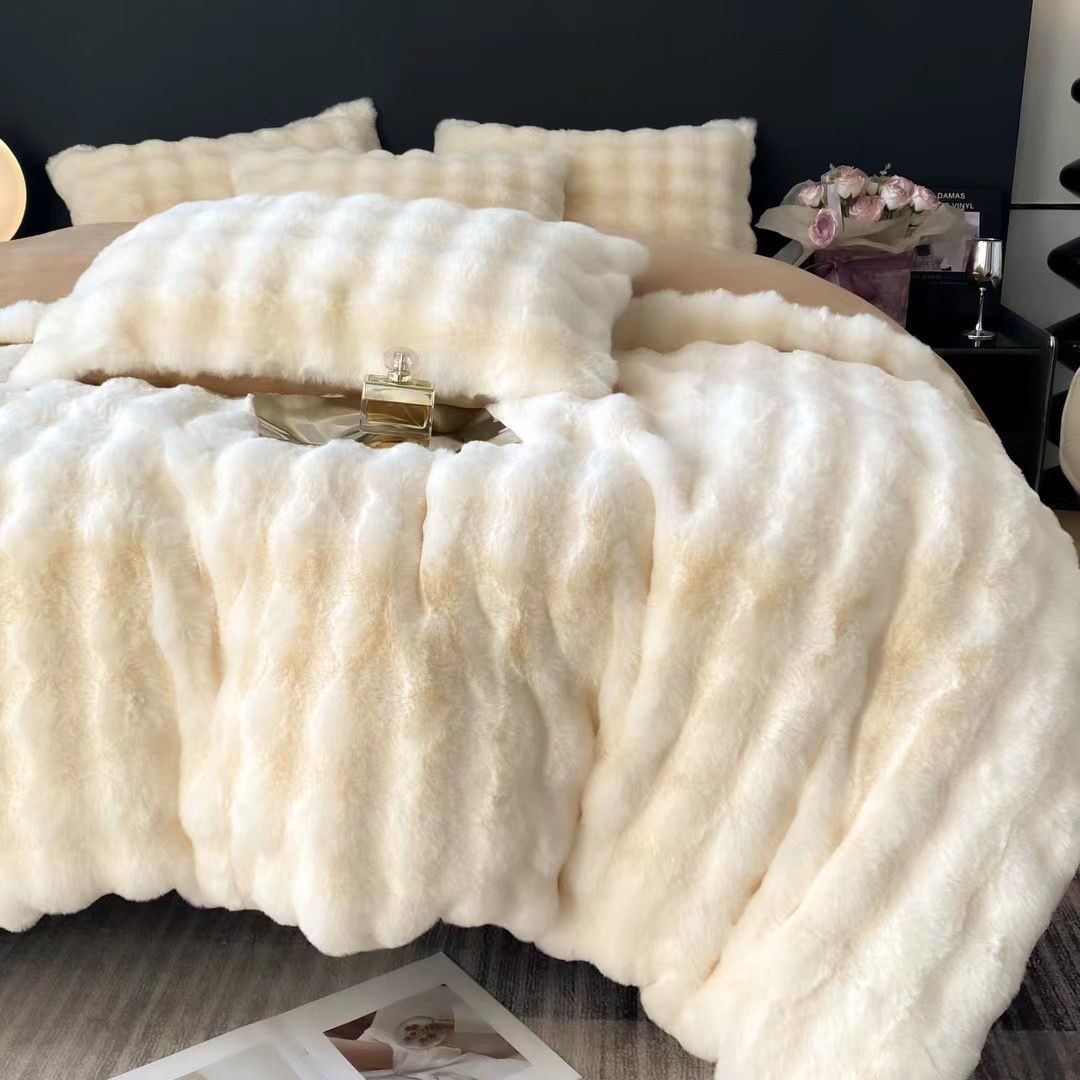 A类皮草绒兔兔毛绒床上四件套牛奶绒床单笠加厚法兰珊瑚绒被套4