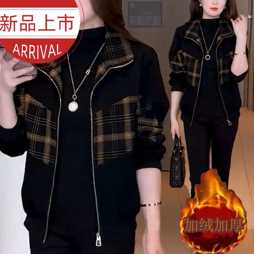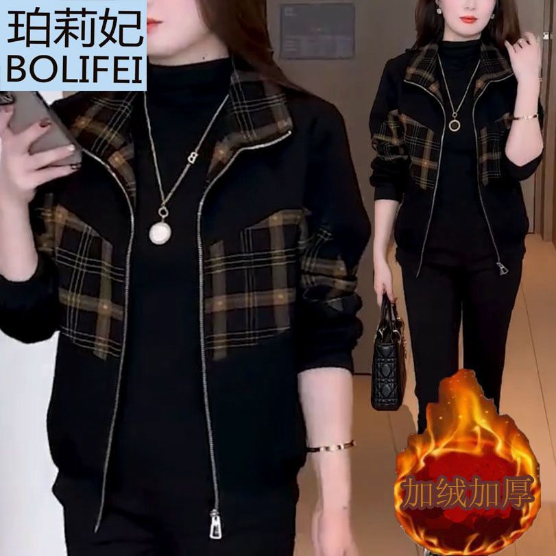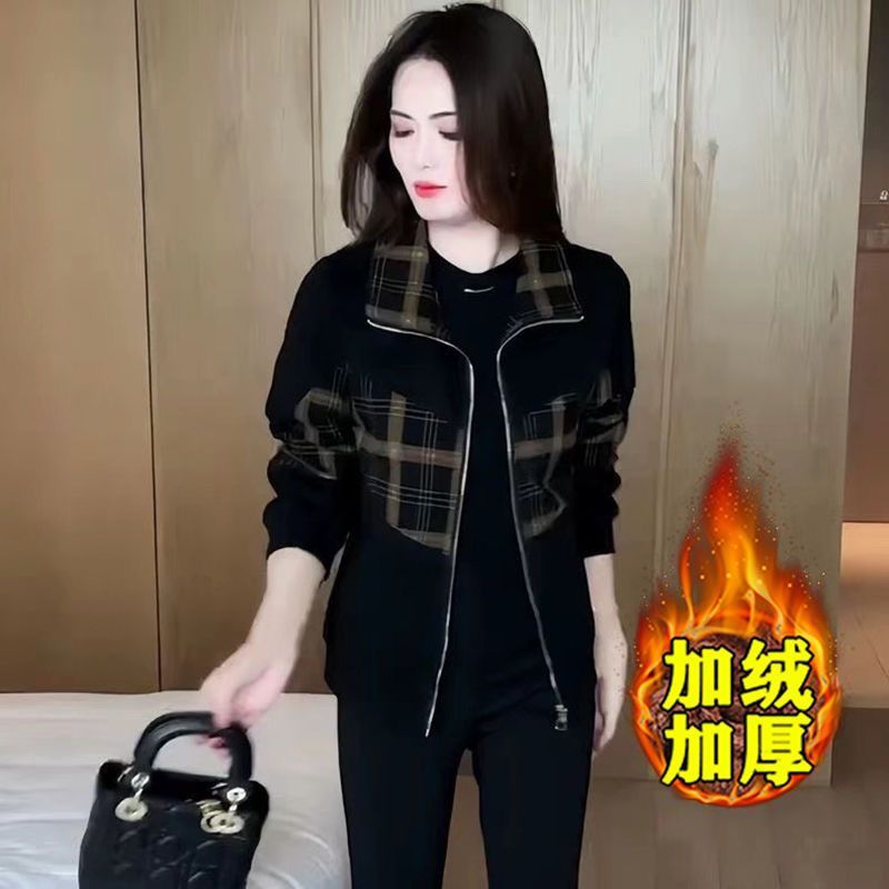 高档女装秋冬新款休闲减龄洋气百搭时尚短外套女夹克加绒加厚上衣