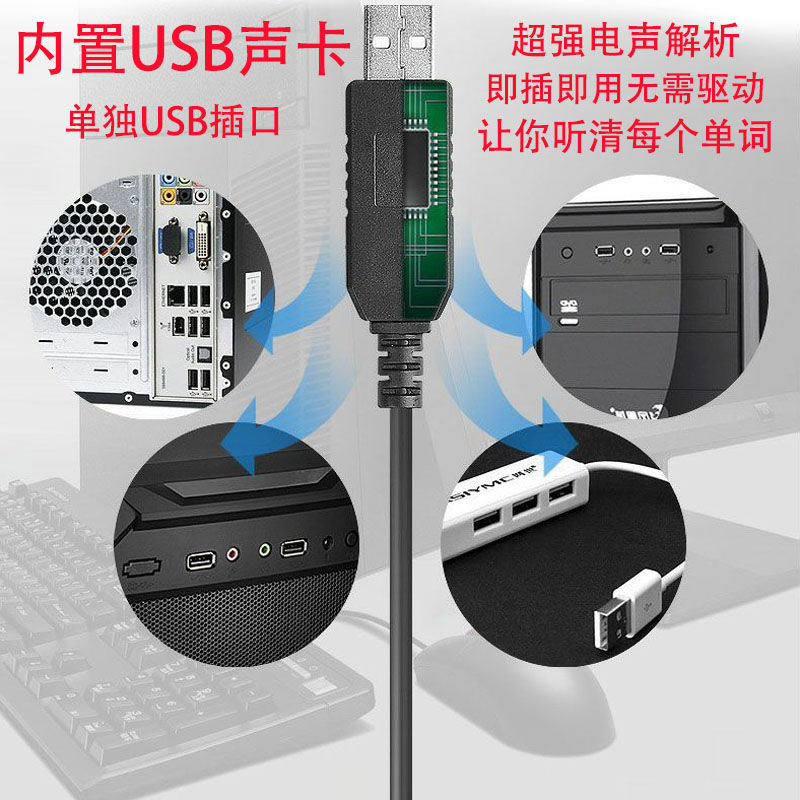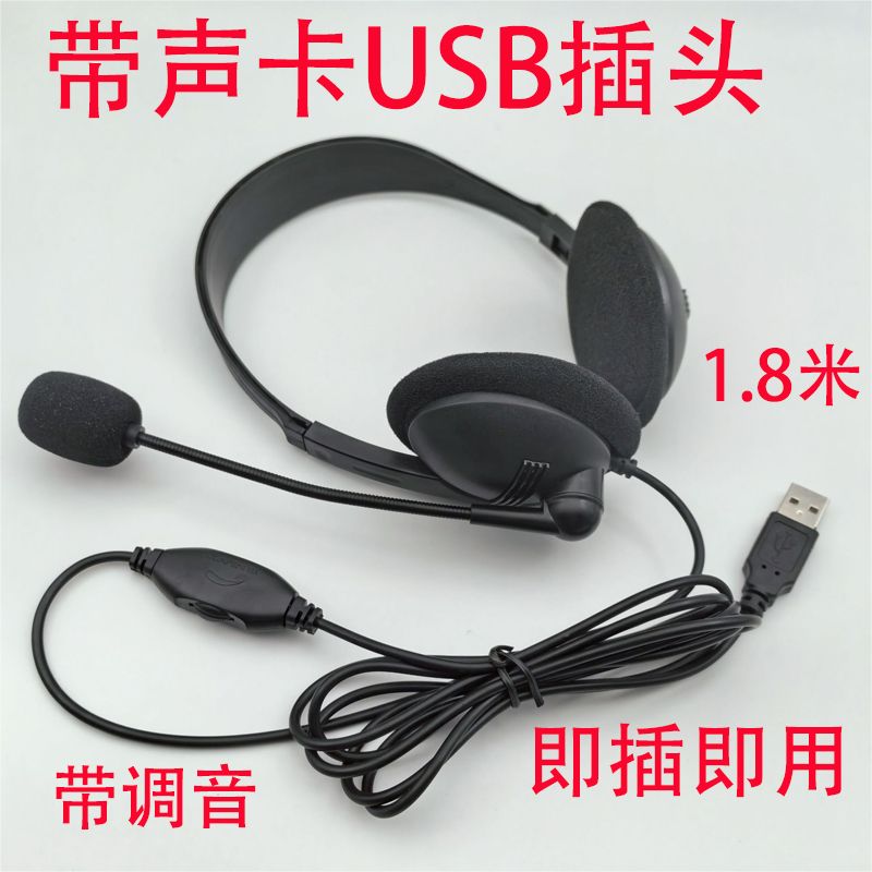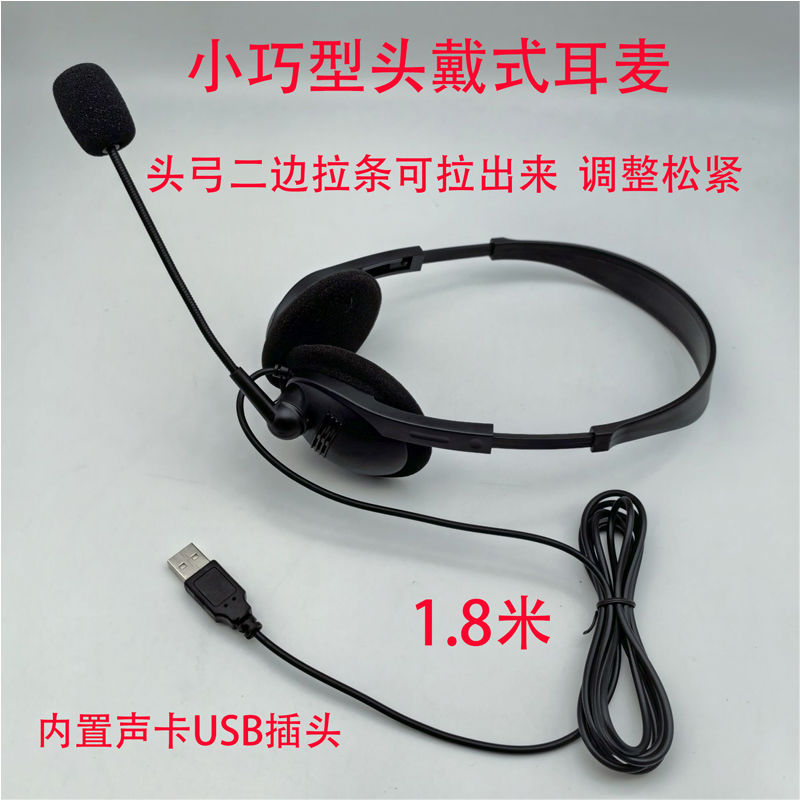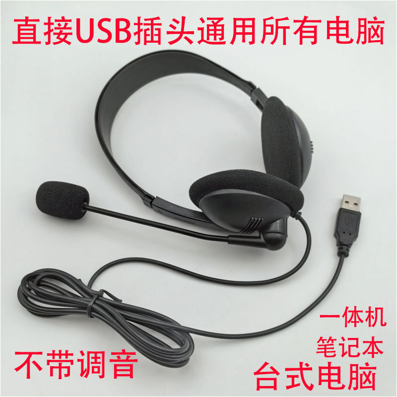 USB插头客服专用耳机头戴式有线带话筒通用电脑办公外呼通用耳麦