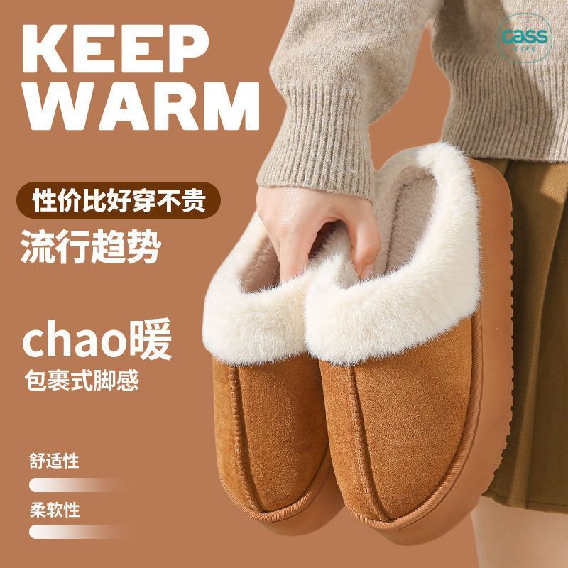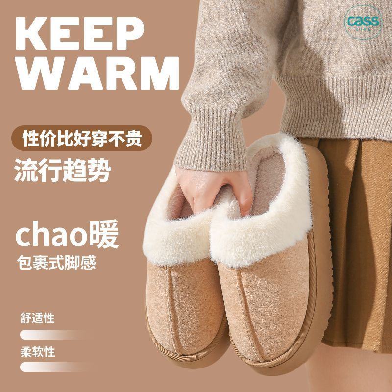 佳适棉拖鞋女士居家家用防滑保暖舒适棉拖情侣款毛绒磨砂棉拖鞋