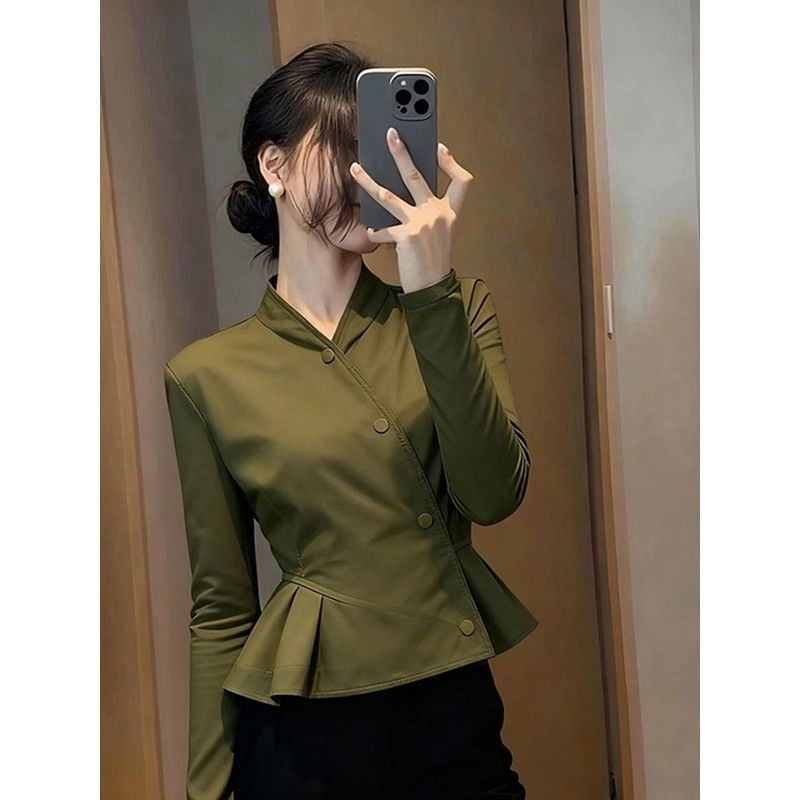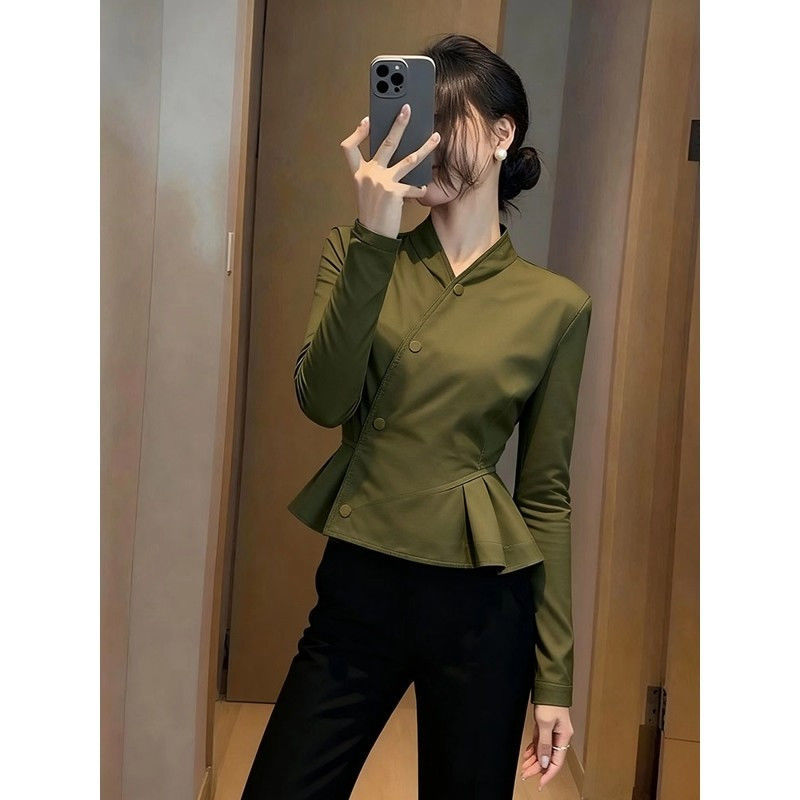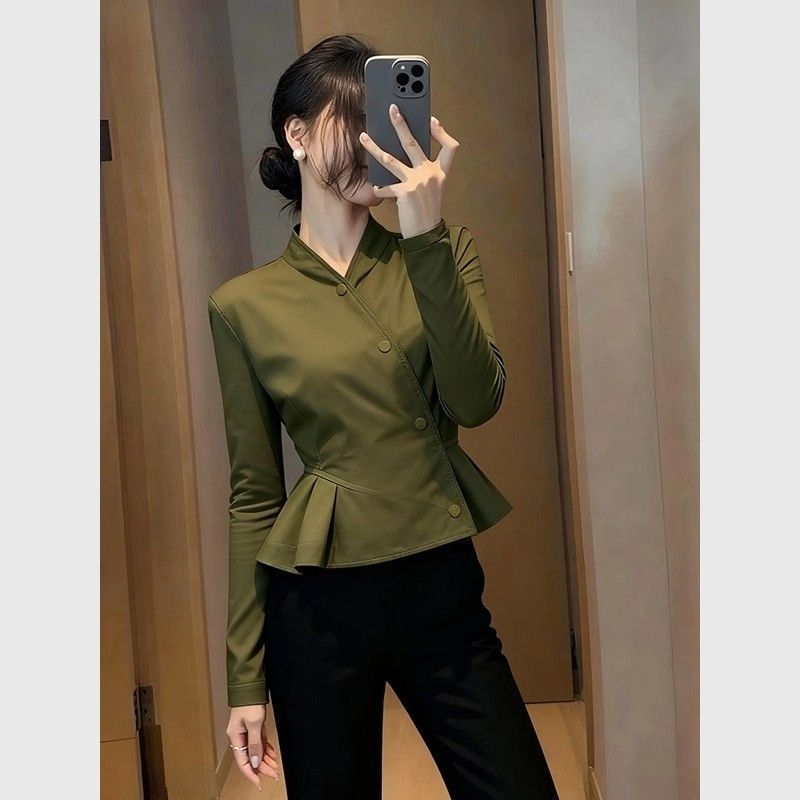 2025秋季新款洋气独特漂亮超好看小香风气质掐腰上衣绿色短外套女【15天内发货】
