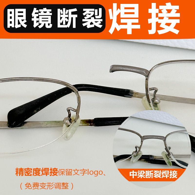 眼镜维修纯钛镜框断裂鼻托焊接修复镜腿铰链更换变形调整抛光翻新