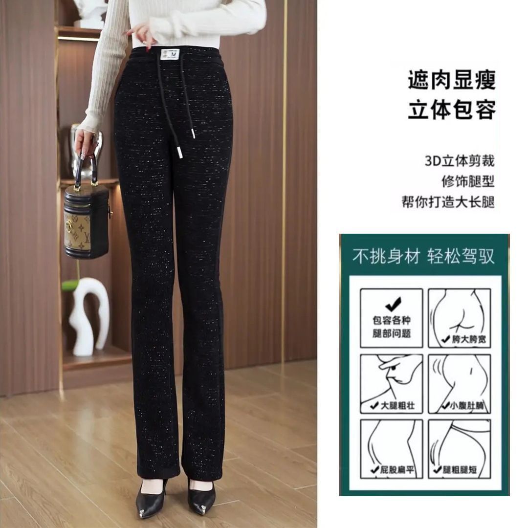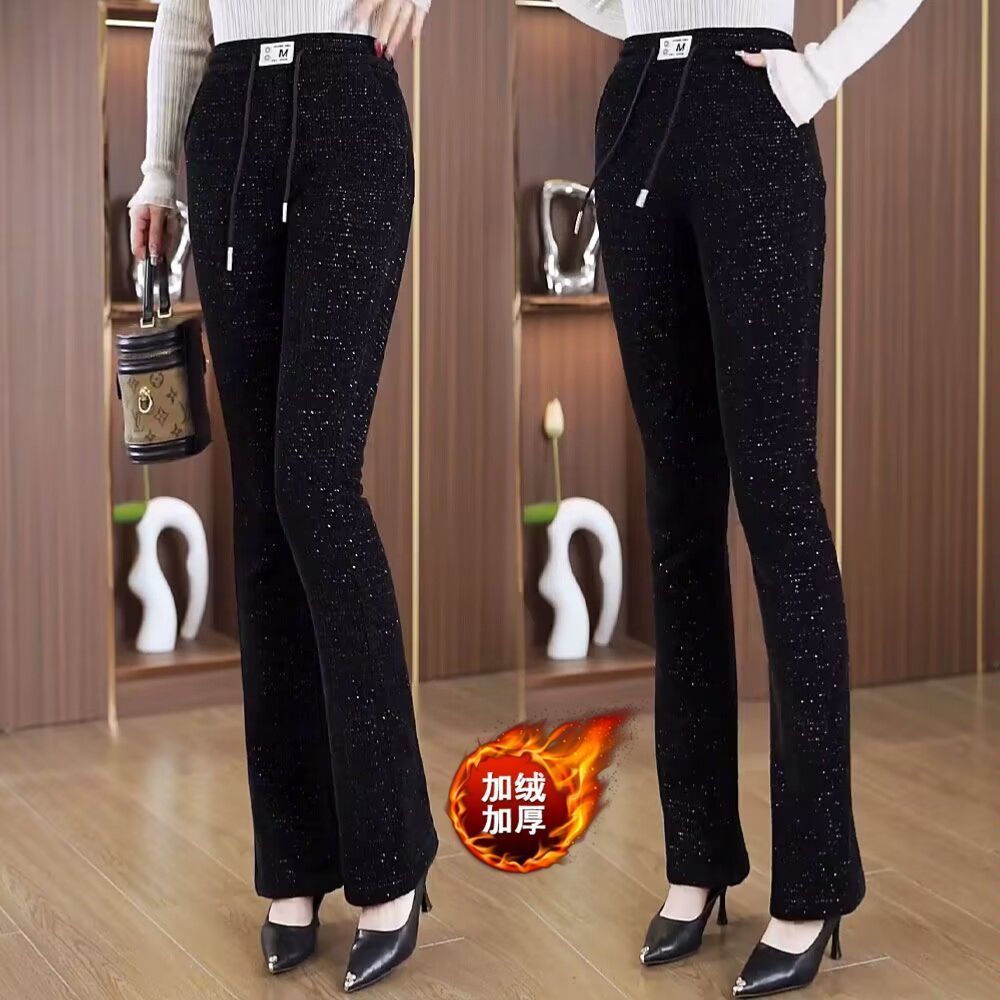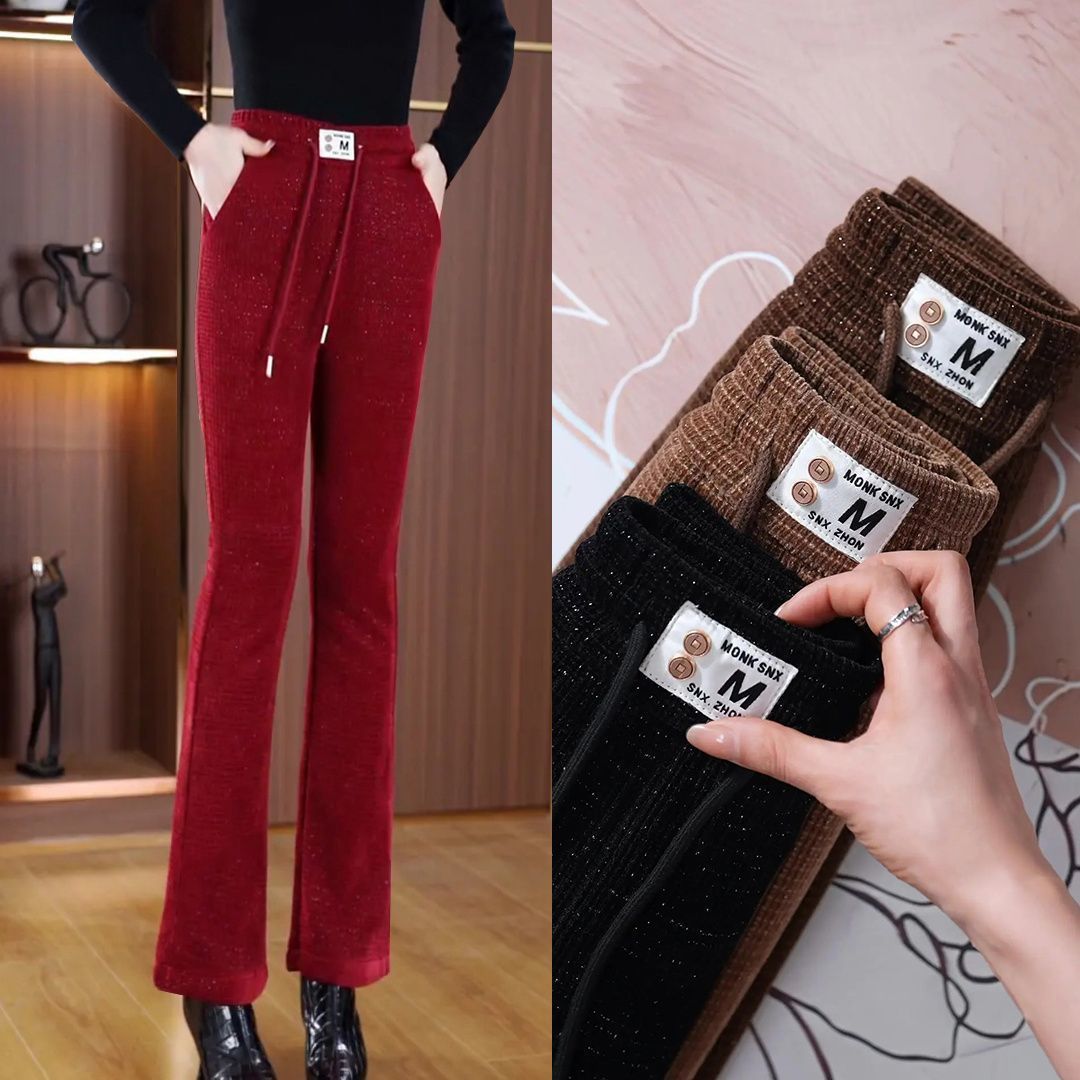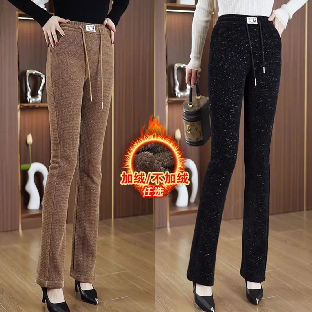 亮丝冬天裤子加绒微喇叭女秋冬新款窄版喇叭长裤新年战袍休闲女裤