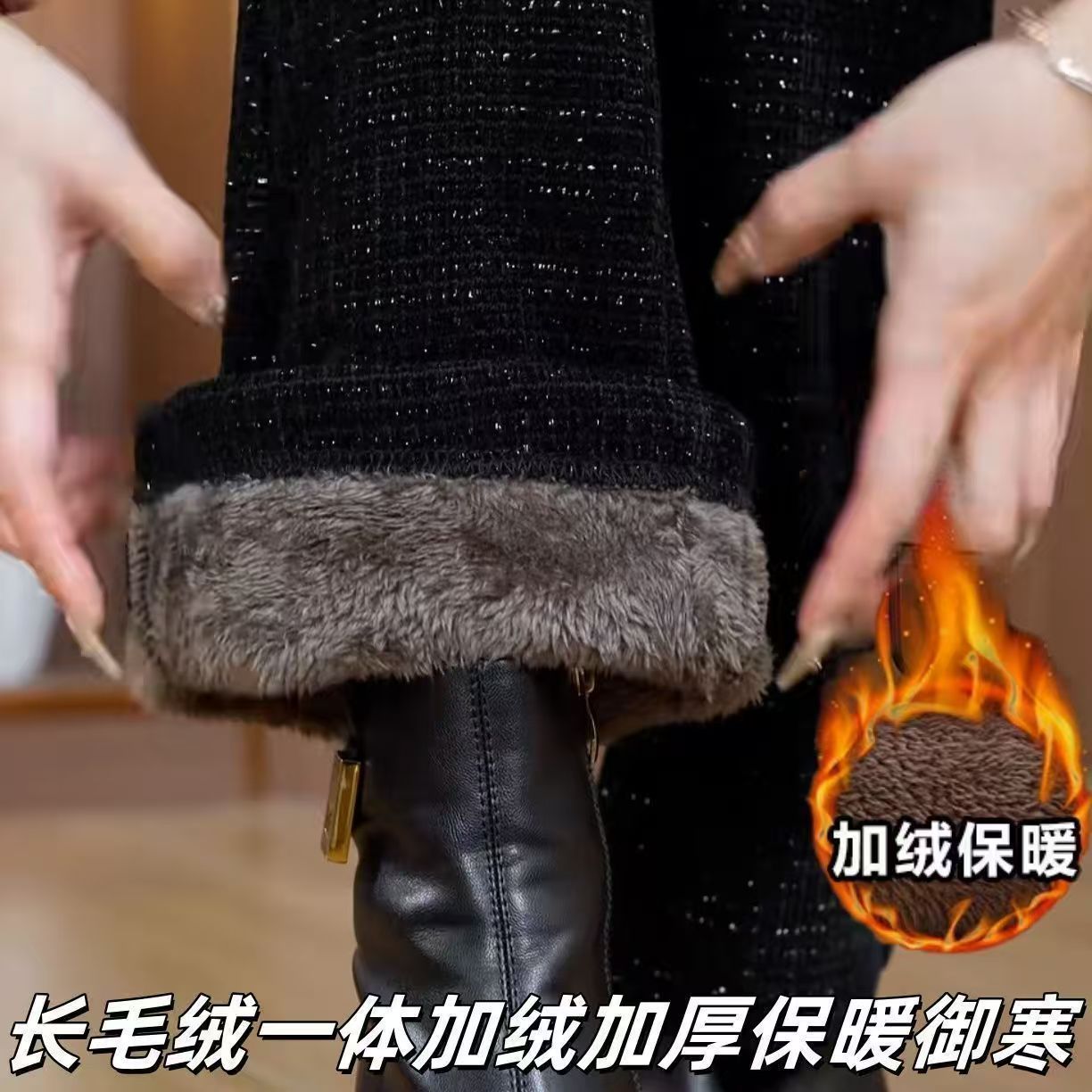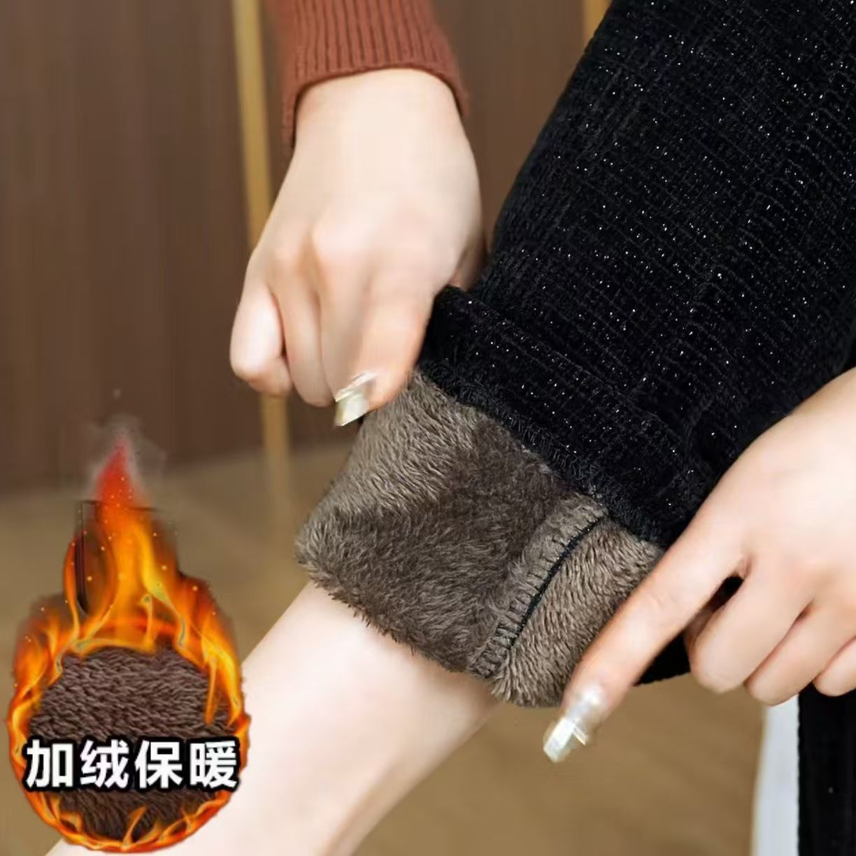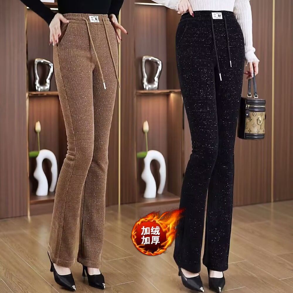 亮丝冬天裤子加绒微喇叭女秋冬新款窄版喇叭长裤新年战袍休闲女裤