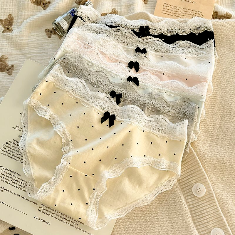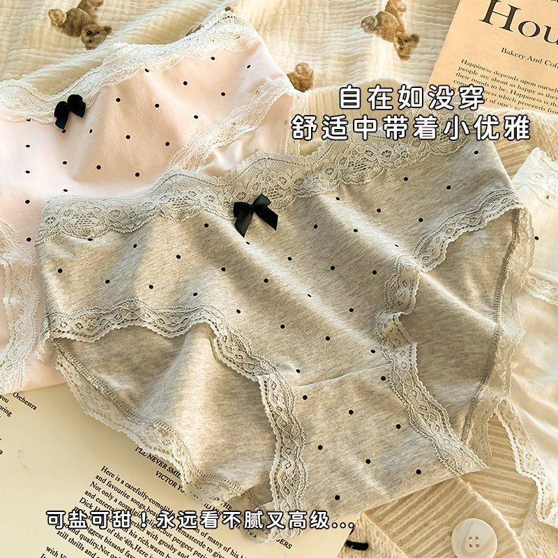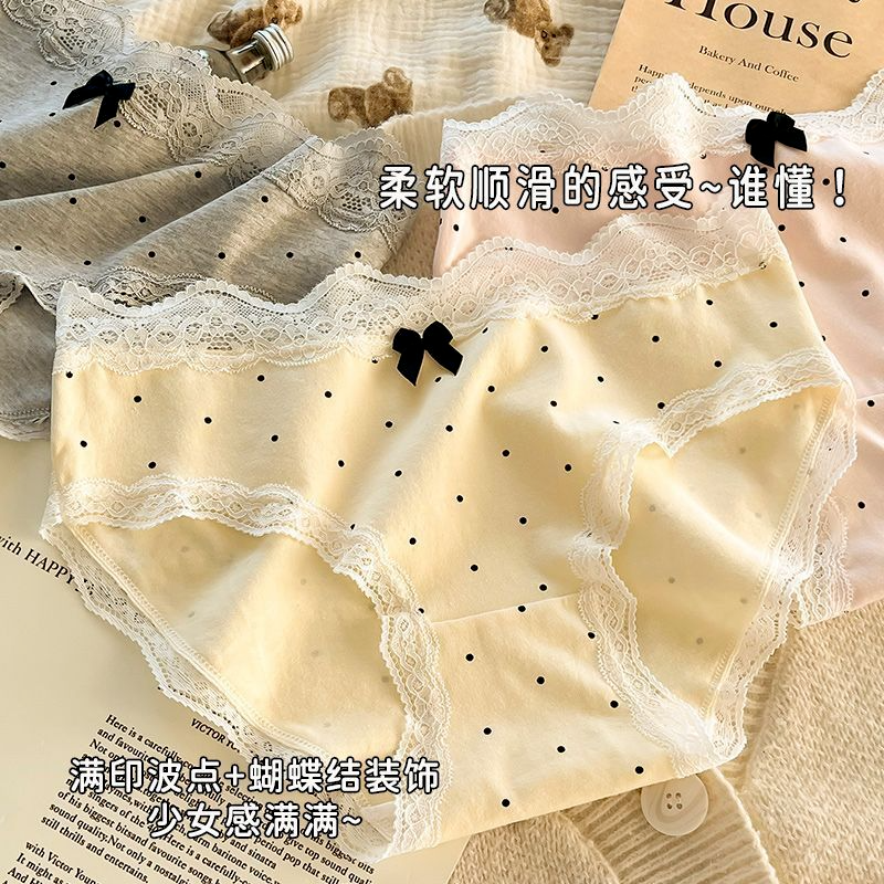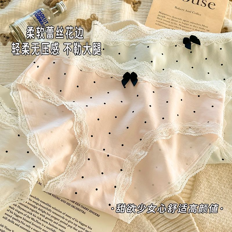 内裤女纯棉7A抗菌中腰内裤无痕性感蕾丝边透气少女学生甜美三角裤
