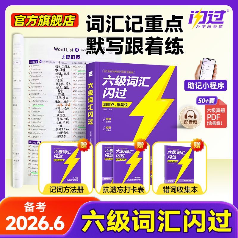 【假一赔十】2026.6六级词汇闪过旗舰版英语词汇书单词书默写本