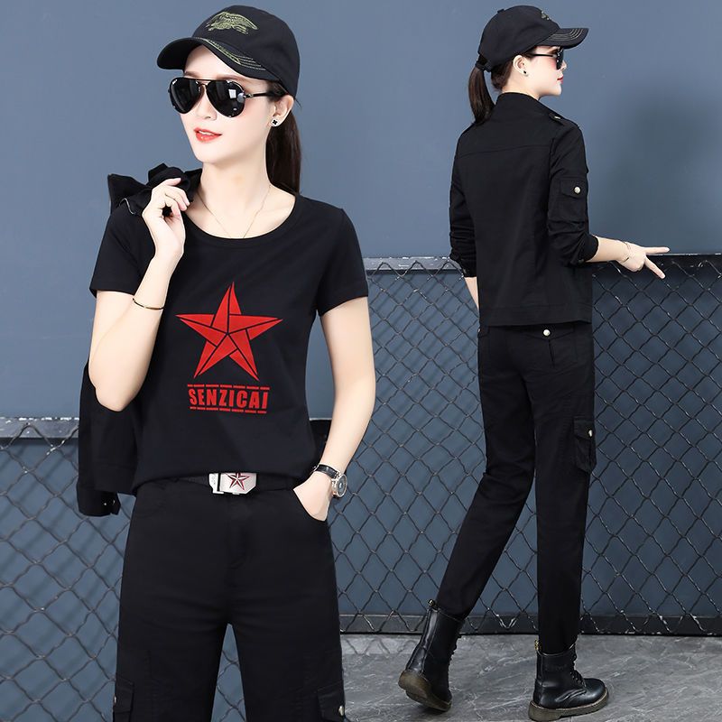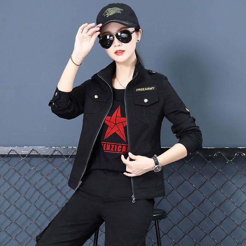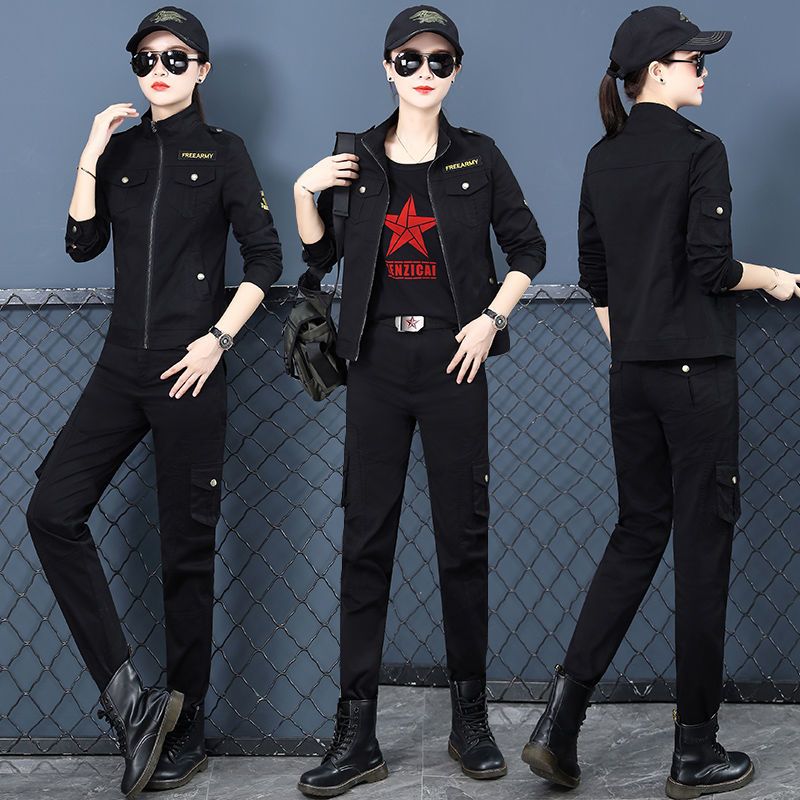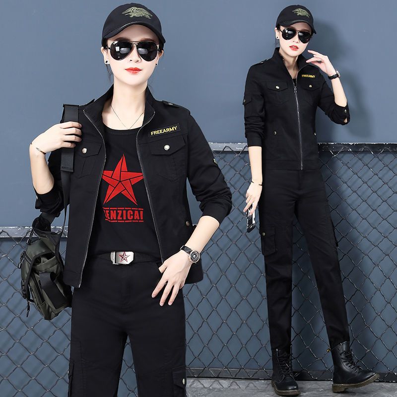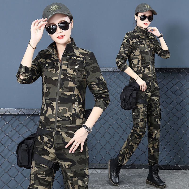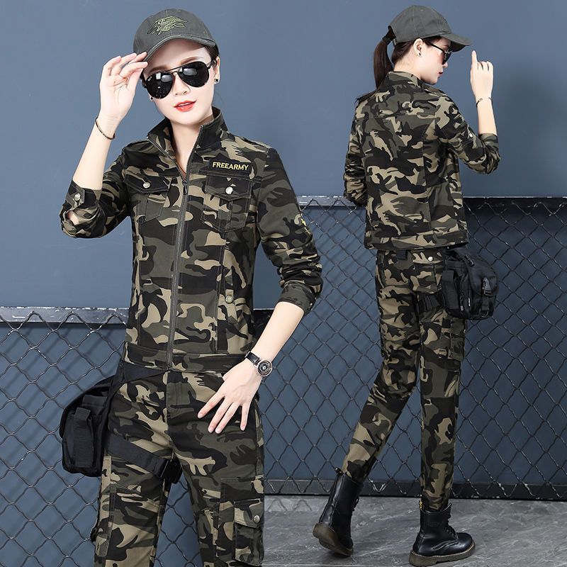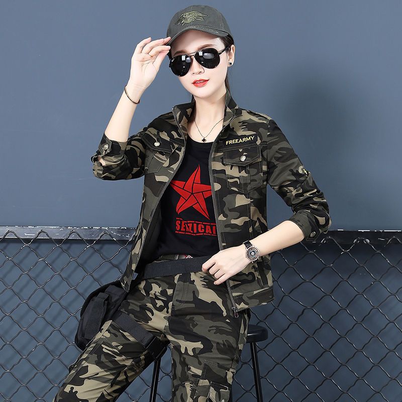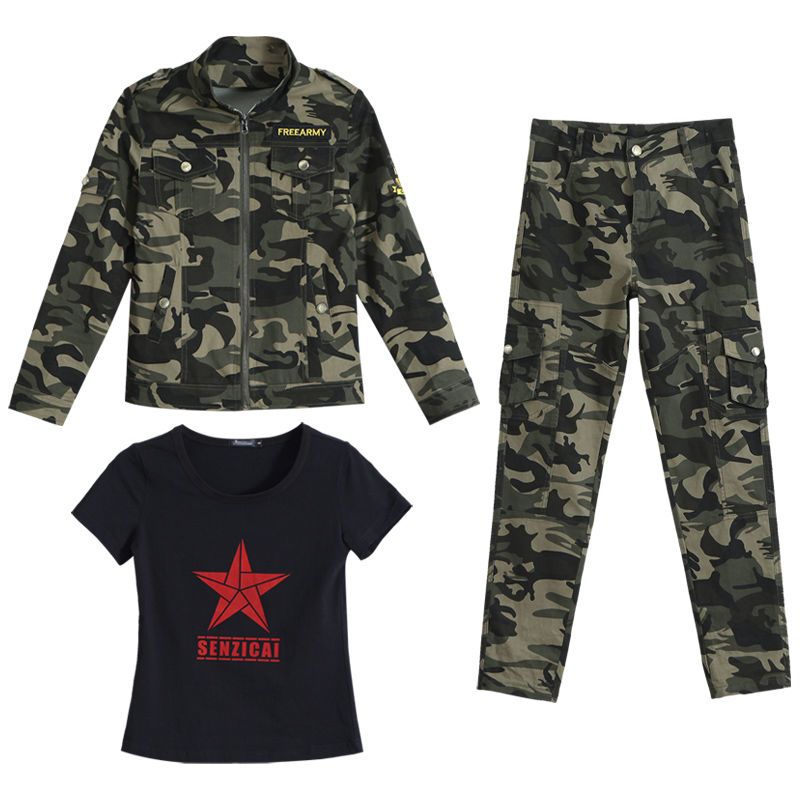 迷彩服套装女时尚个性大码三件套迷彩户外休闲运动军旅风水兵舞潮