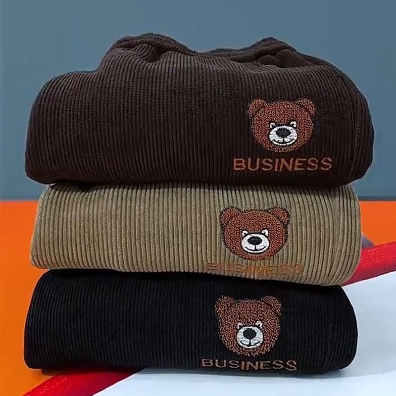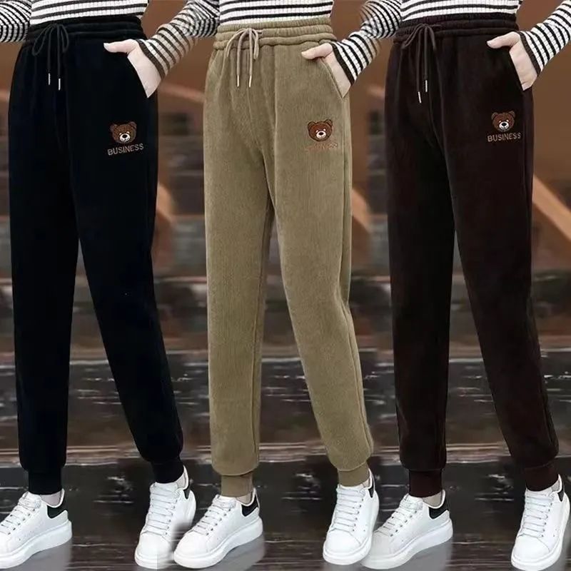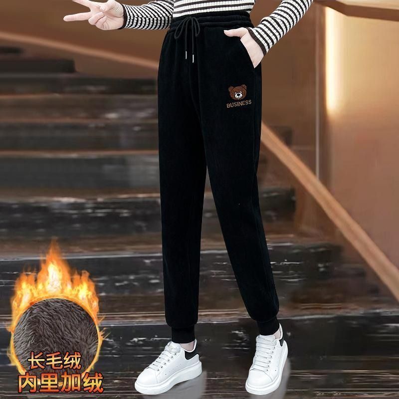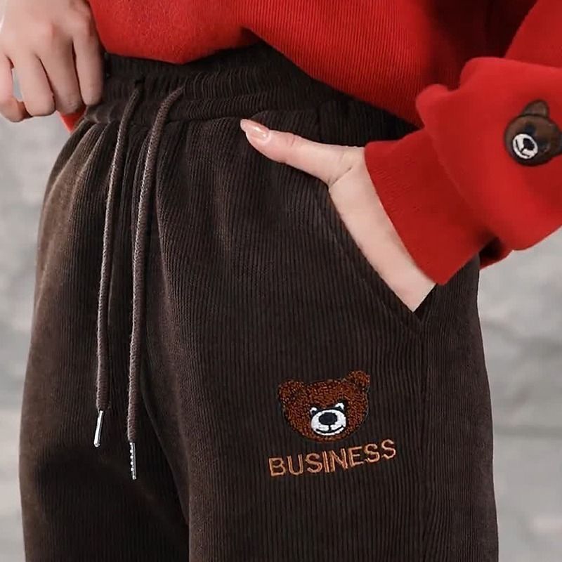 冬季加厚灯芯绒小熊休闲裤高腰百搭宽松保暖哈伦裤松紧腰束口长裤