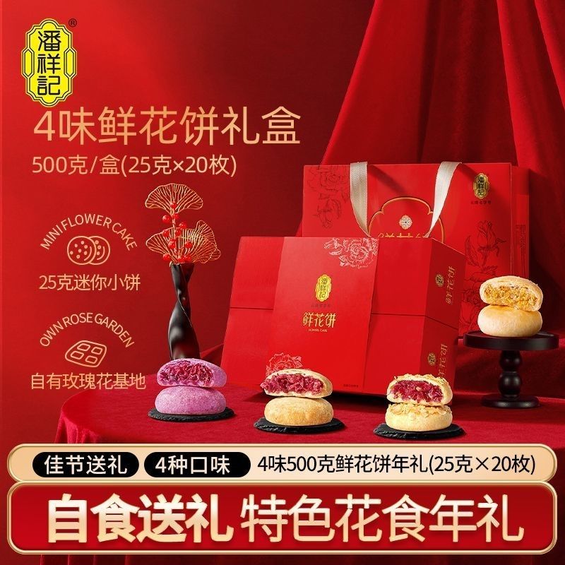 潘祥记鲜花饼500克4味20枚礼盒装中秋送礼