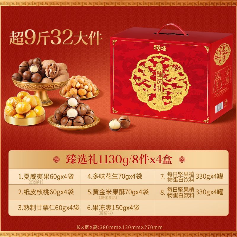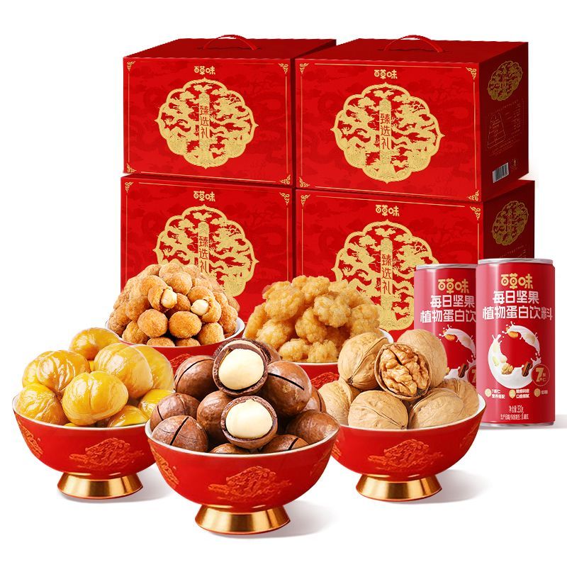 【4盒】百草味坚果零食大礼包坚果礼盒春节年货走亲戚送礼团购