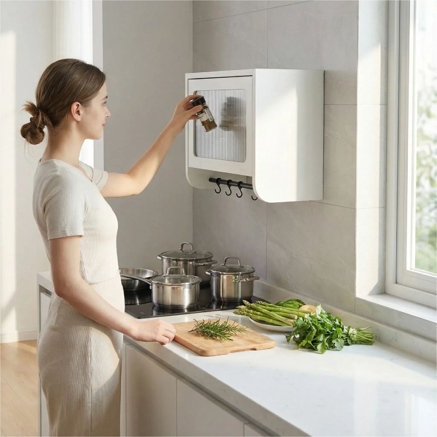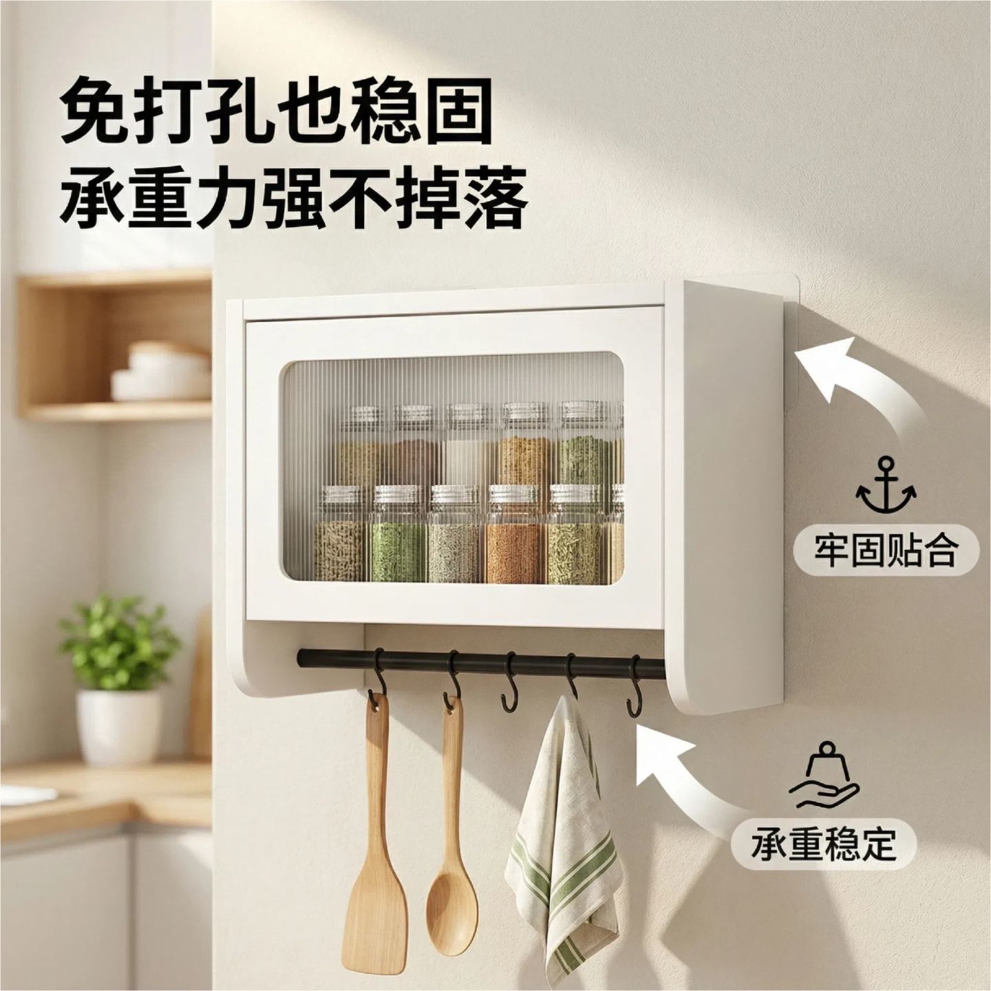 其他家简约现代0甲醛加宽调料柜带挂杆挂厨具壁挂式易清洗收纳架