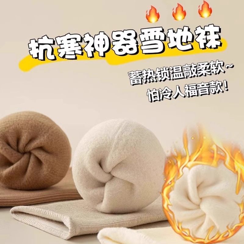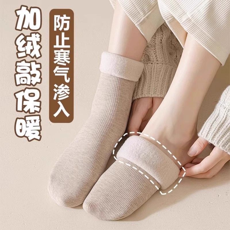 帕兰朵雪地袜女冬加绒加厚冬天中筒冬保暖睡眠月子长厚袜子女秋冬