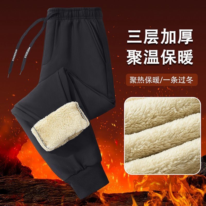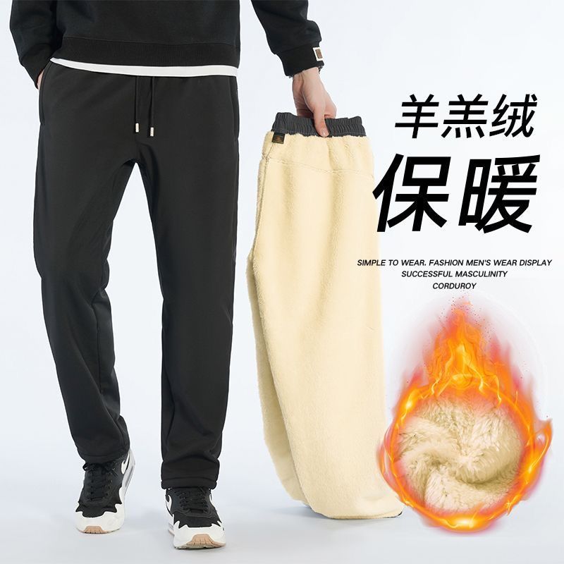 啄木鸟羊羔绒男女棉裤冬季加绒加厚直筒束脚裤防水抗寒保暖裤户外