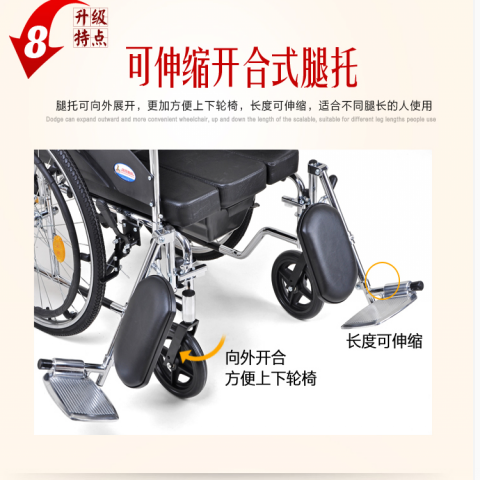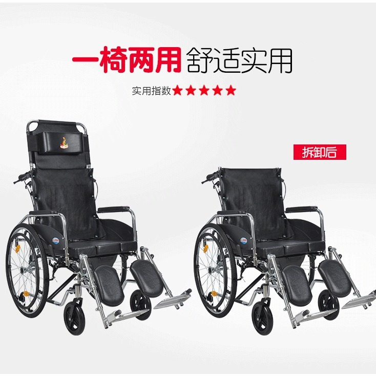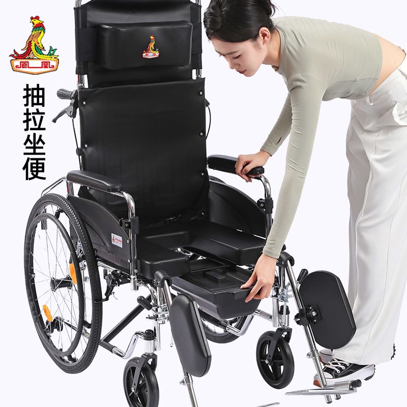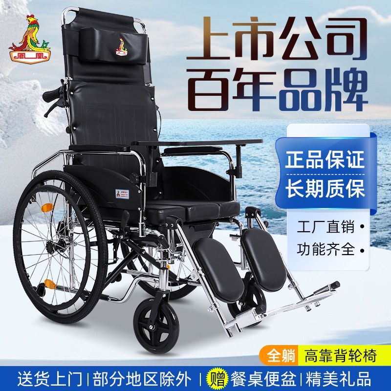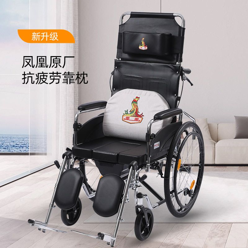 上海凤凰轮椅可折叠轻便老人轮椅带坐便残疾人多功能全躺手动轮椅