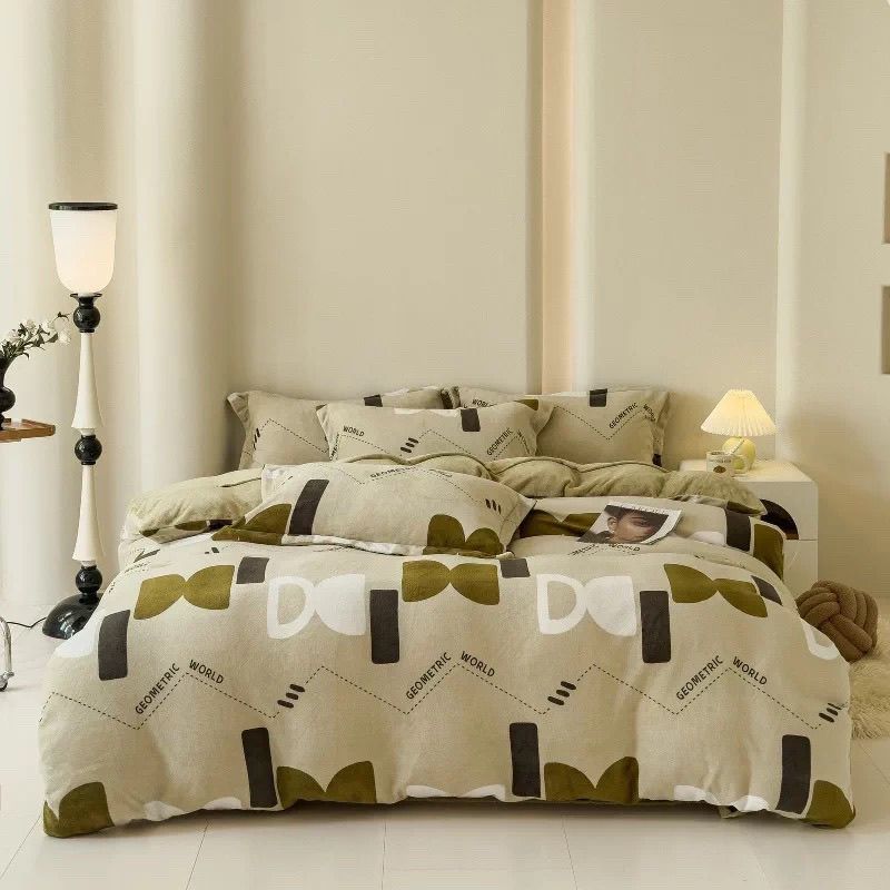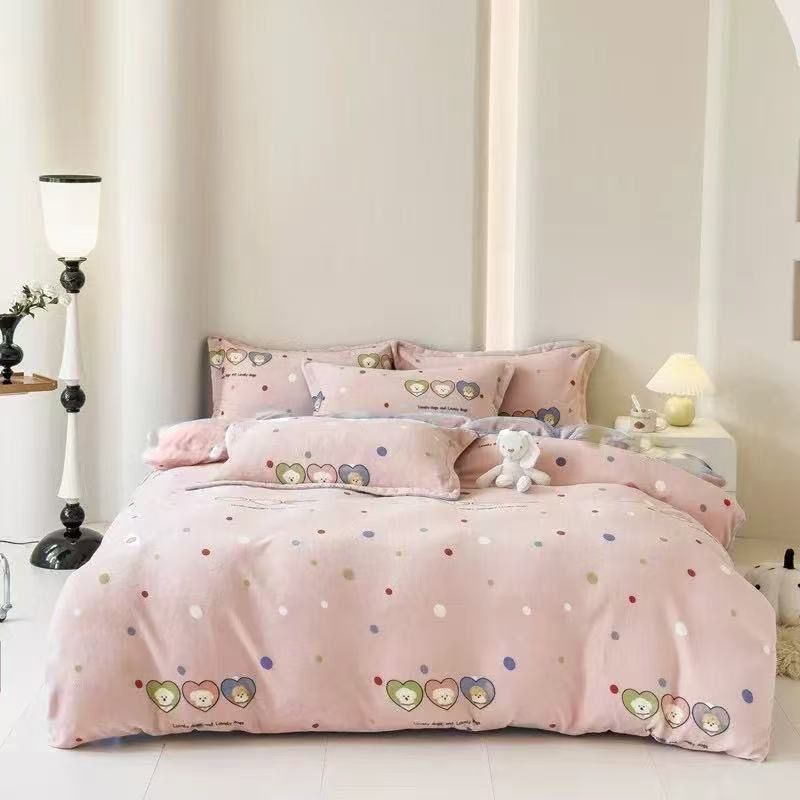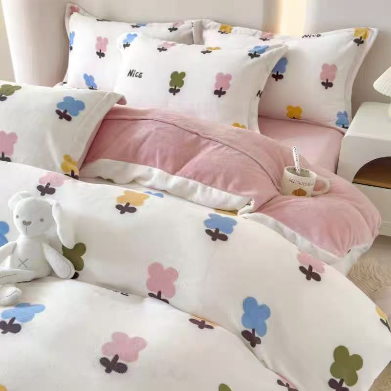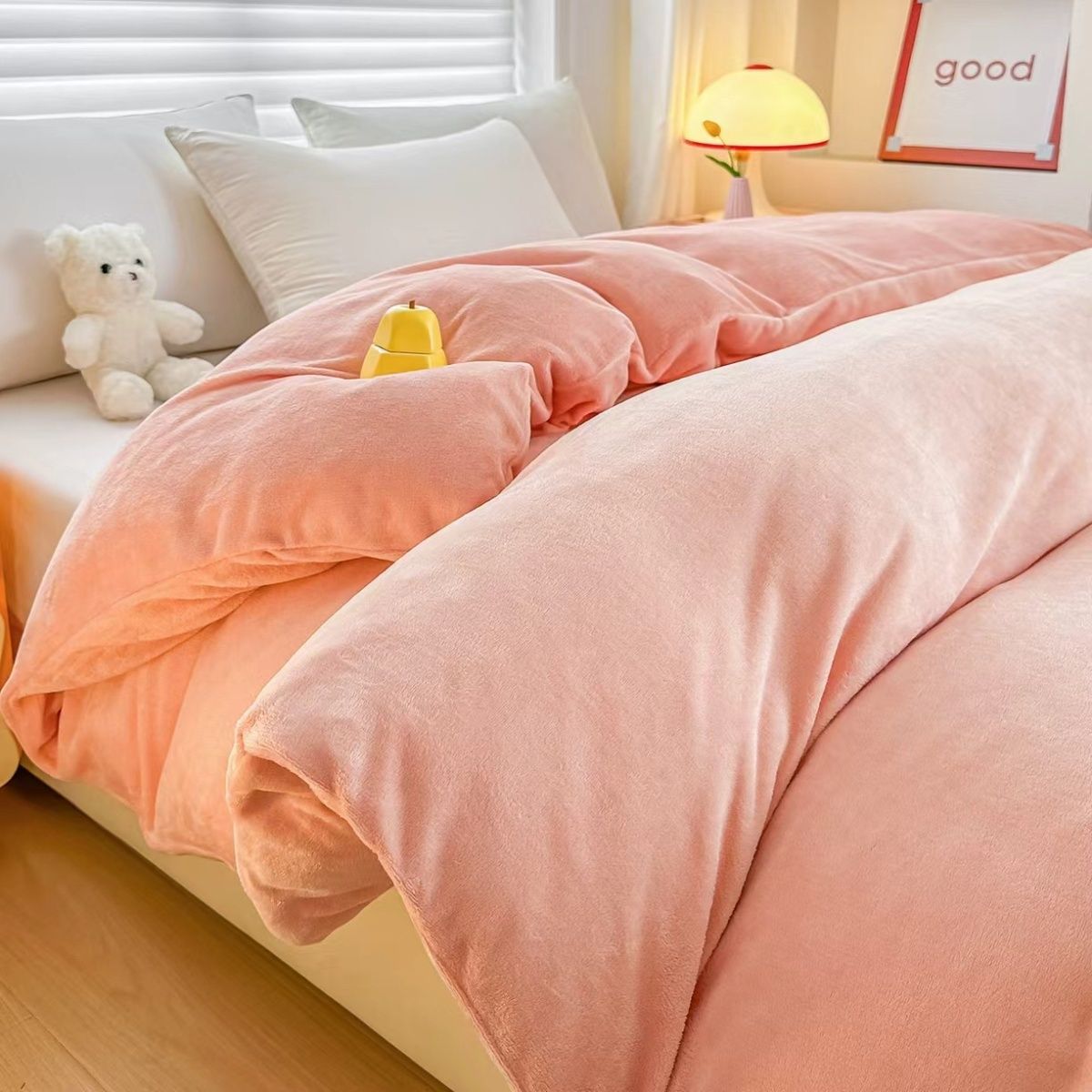 冬季加厚牛奶四件套卡通双面被套床单保暖冬季四件套纯色