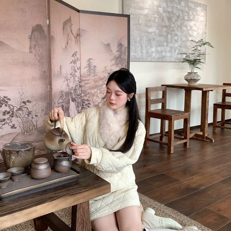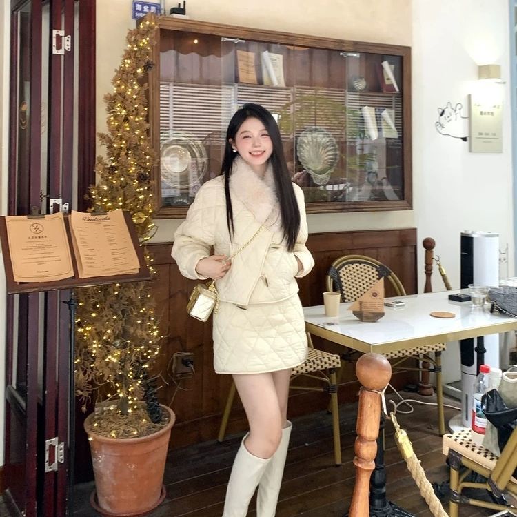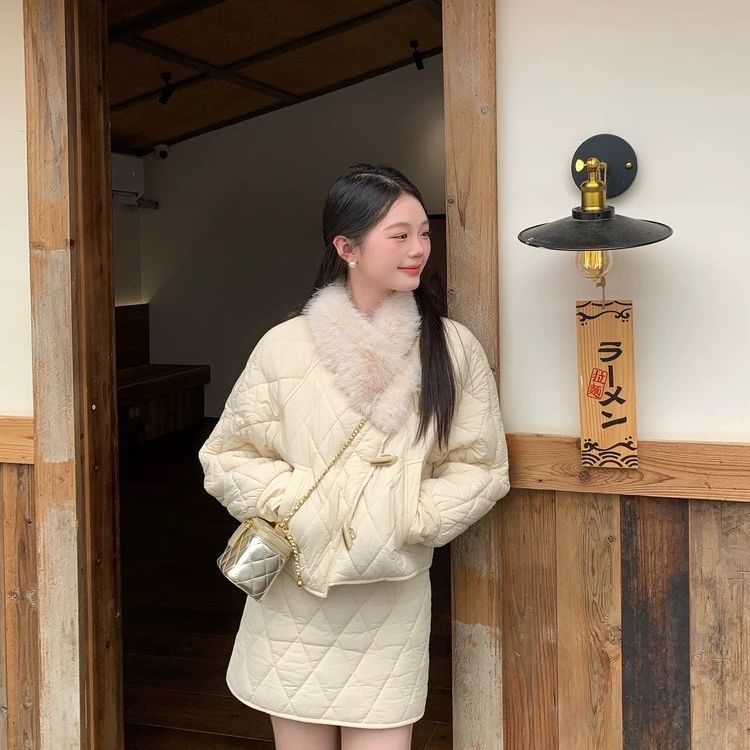 洋气时尚菱格棉服套装小个子冬季套装韩版慵懒风小香风两件套女