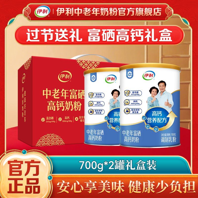 【过节送礼】伊利中老年富硒高钙奶粉700g*2罐0蔗糖维生素礼盒