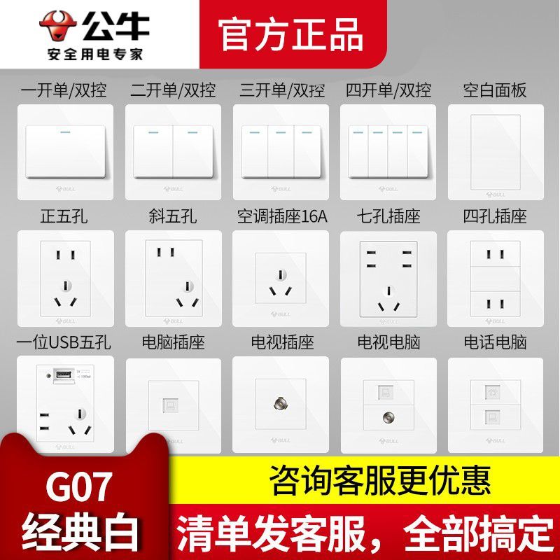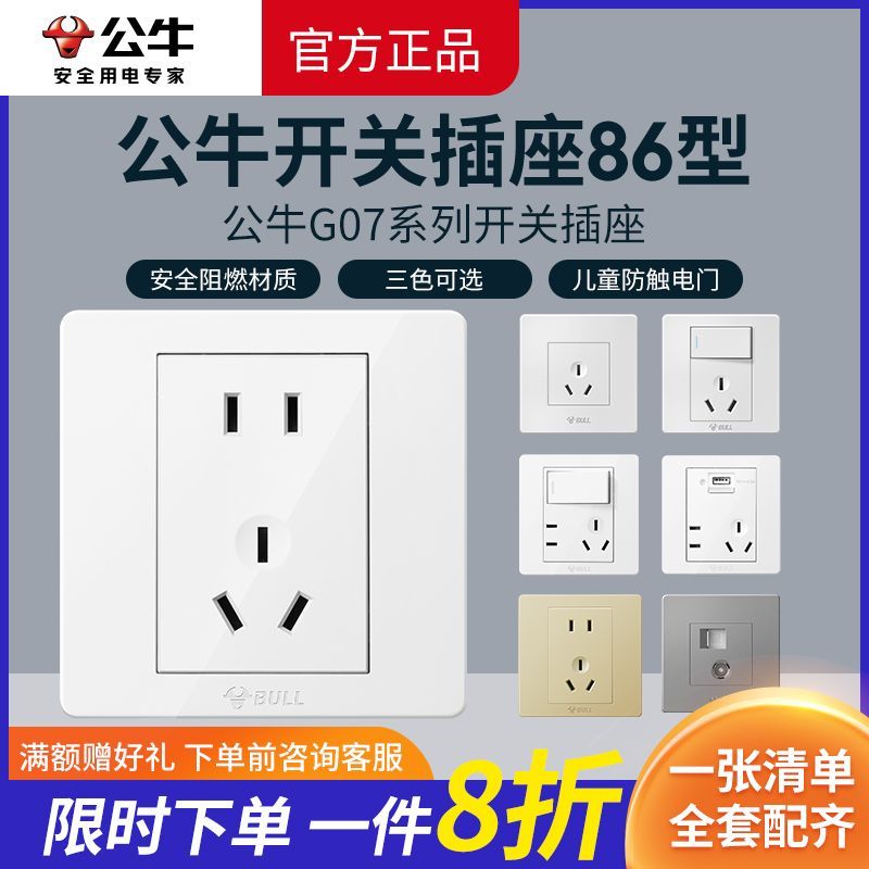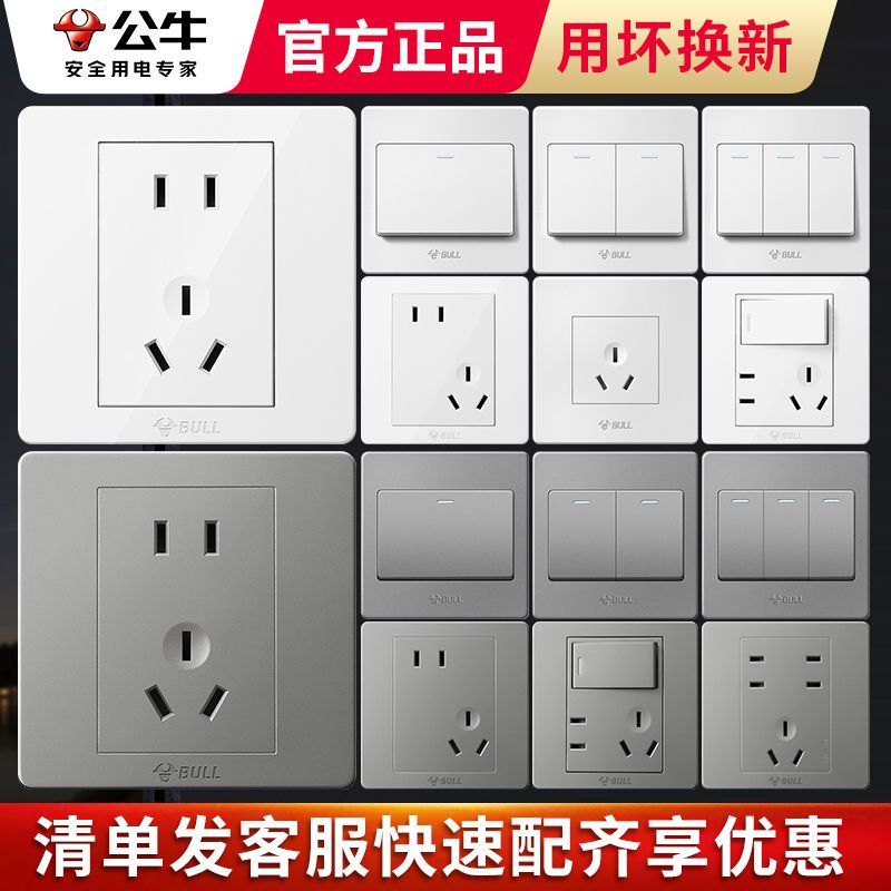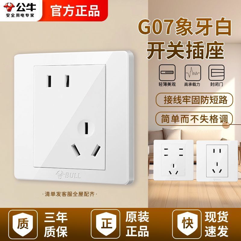 公牛开关插座面板嵌入式家用86型墙壁五孔电源插座16A大功率插座