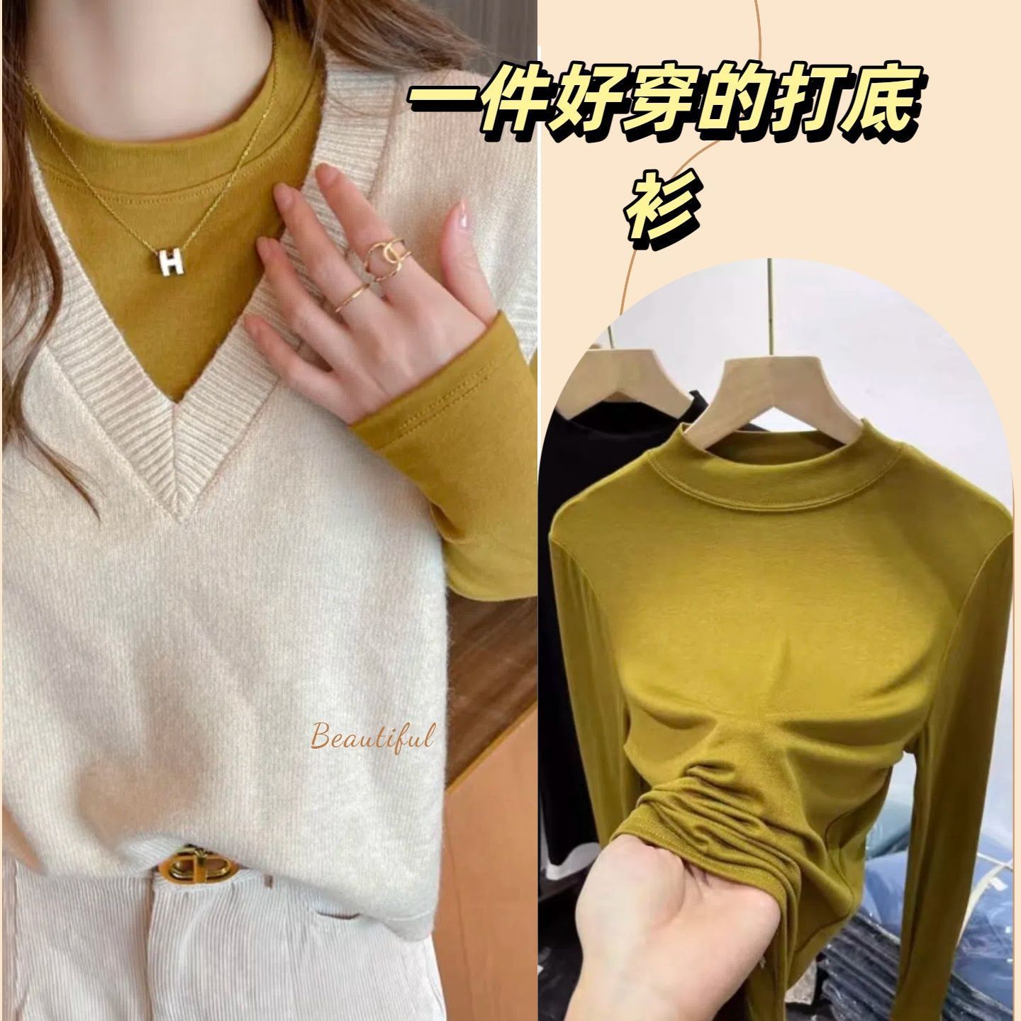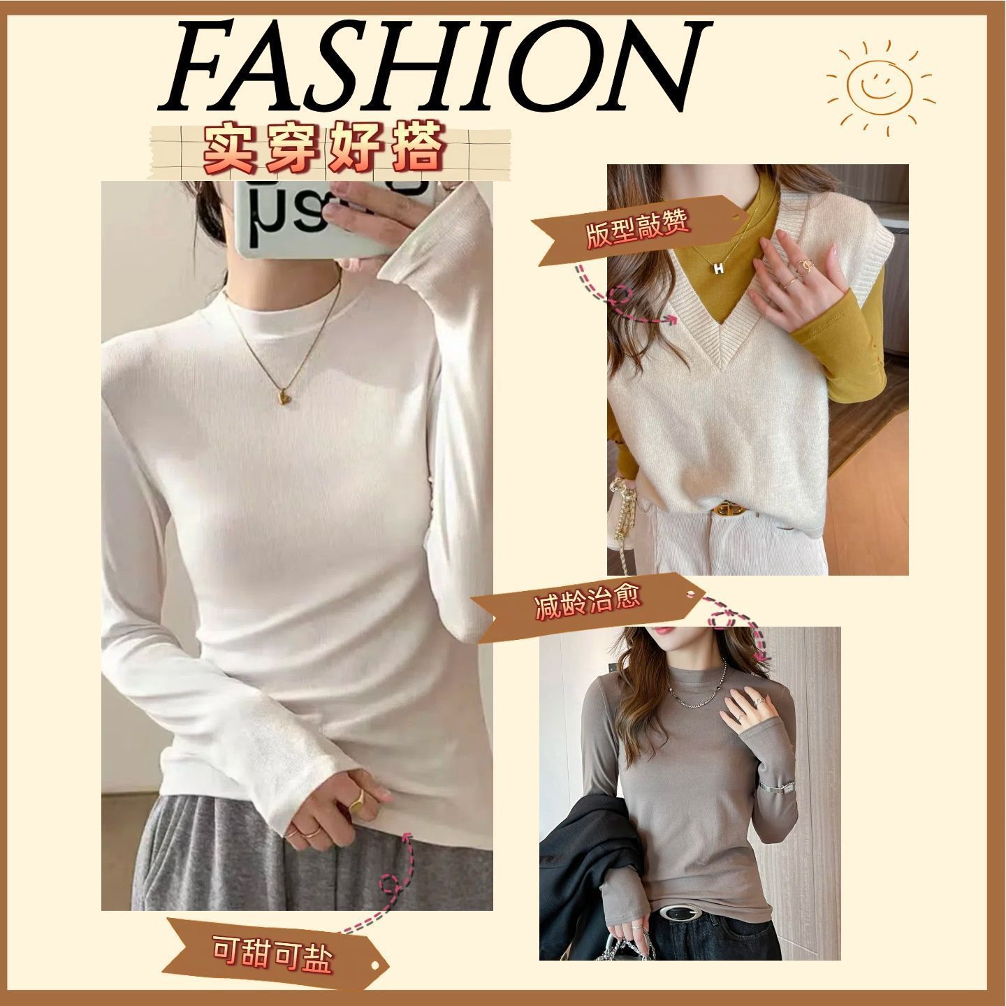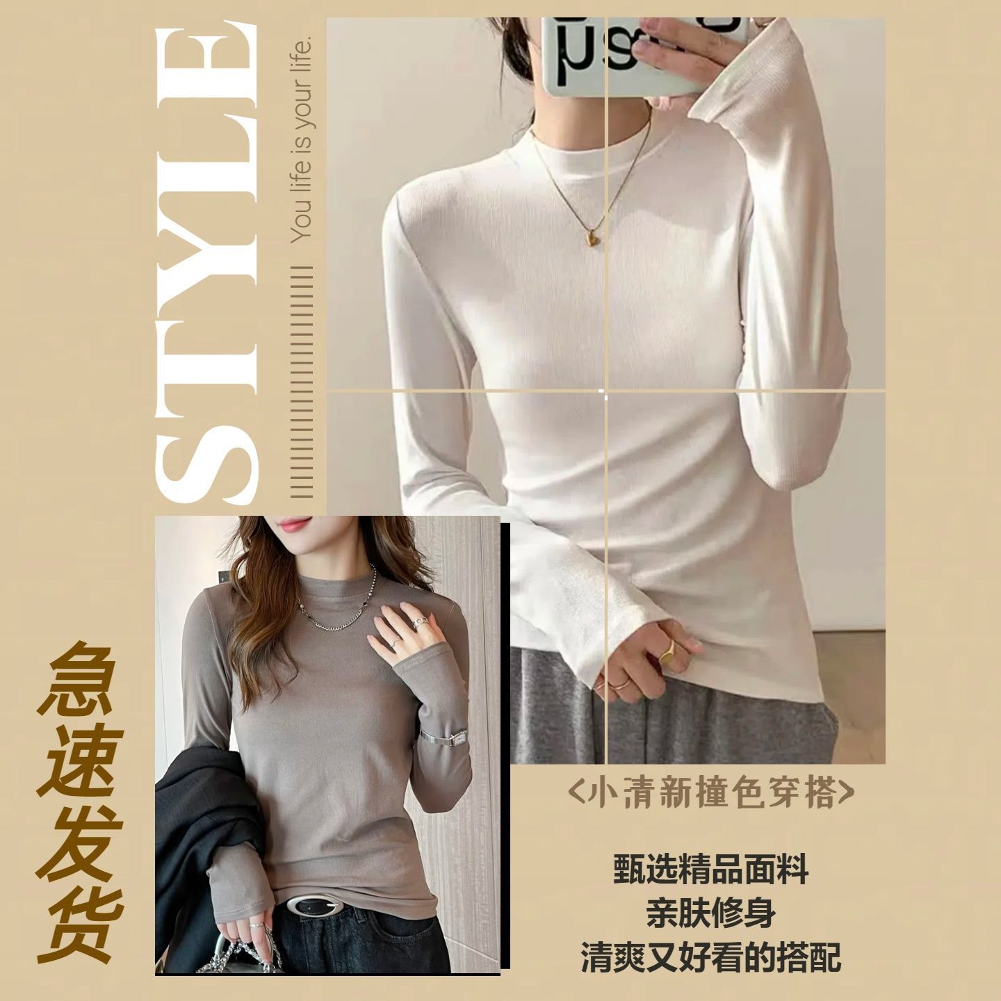 100%正品保暖废土风半高领打底衫女成人女内搭长袖纯色立领衫秋冬