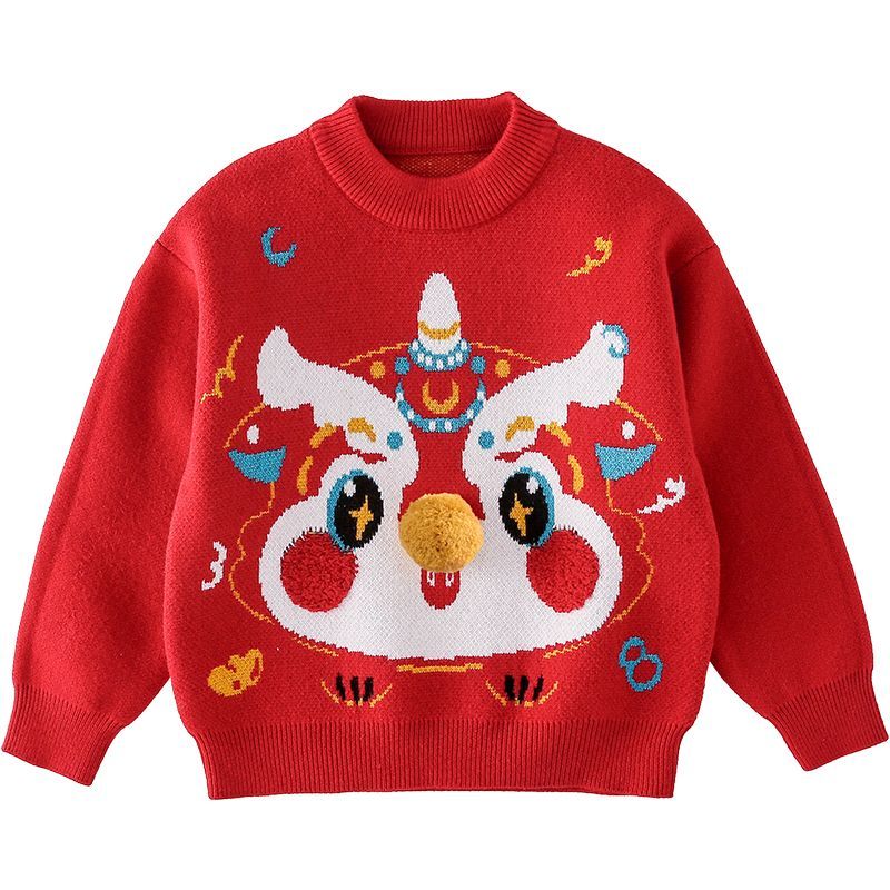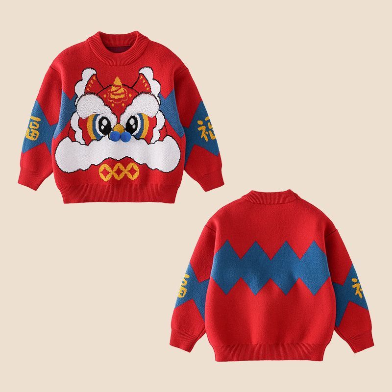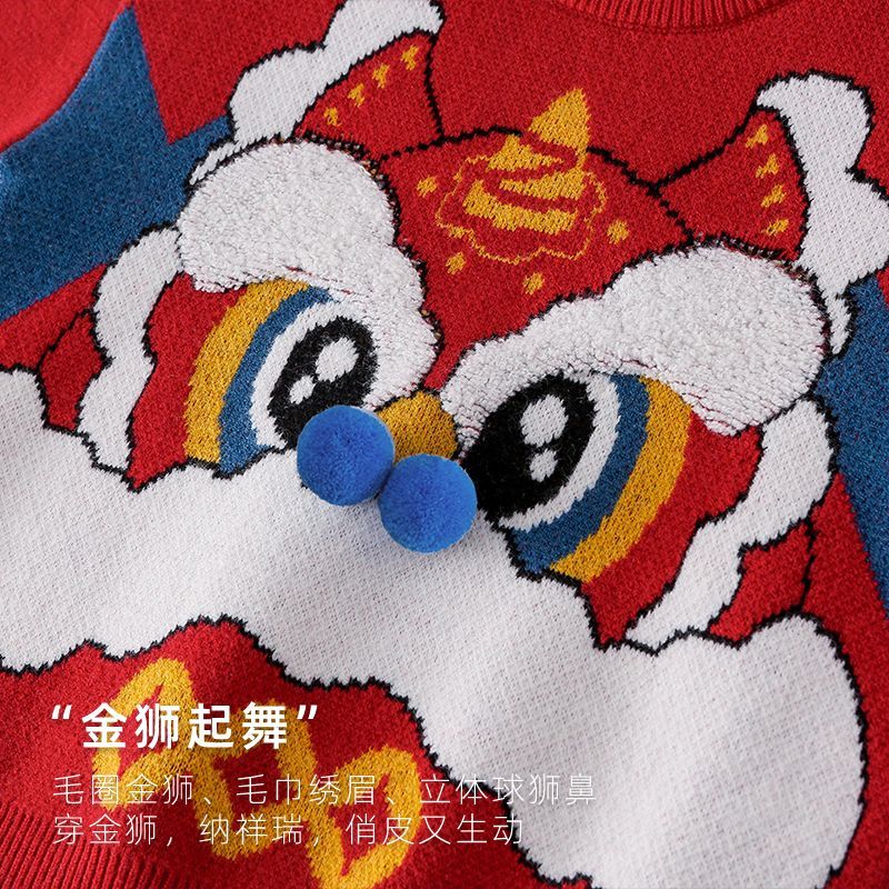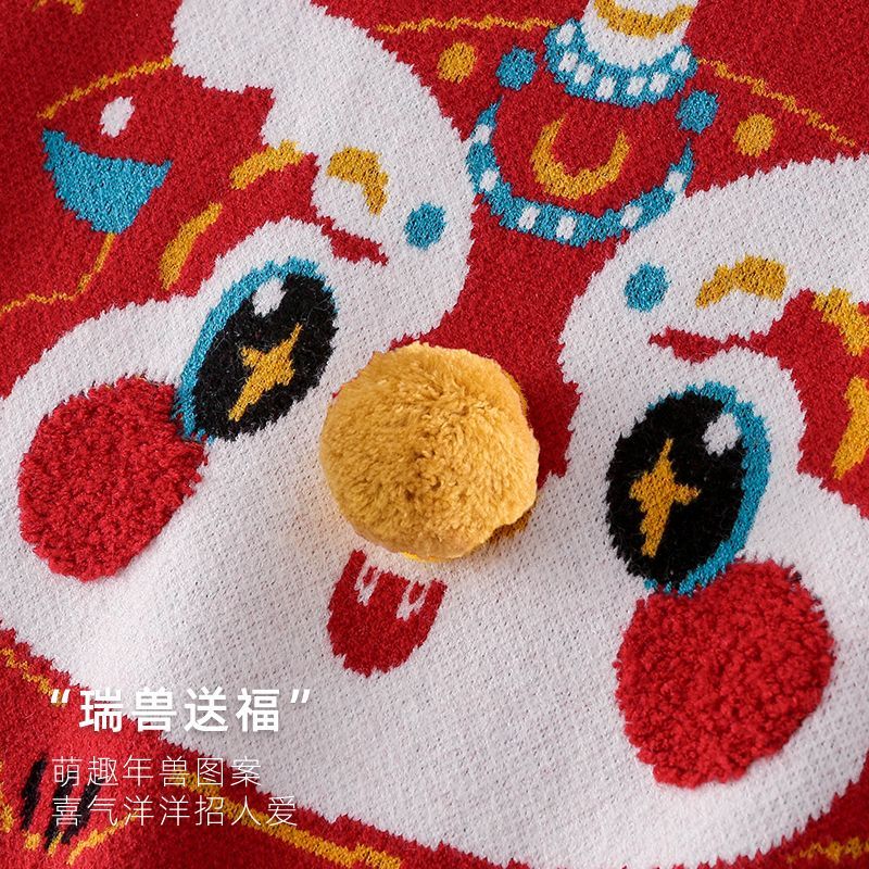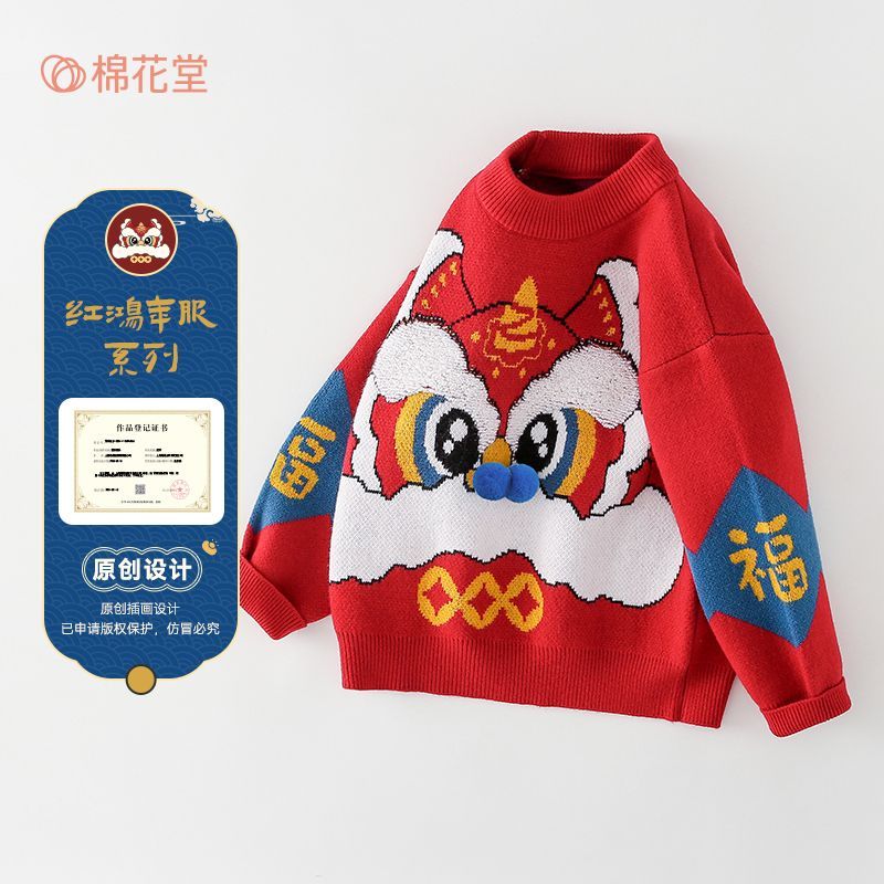 棉花堂儿童毛衣宝宝冬季拜年服男童女童保暖小童针织喜庆红色童装