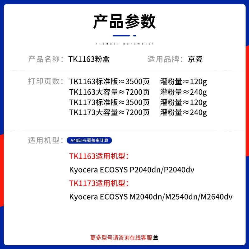 适用京瓷TK1173粉盒ECOSYS P2040dn打印机墨盒M2640dv碳粉TK1163