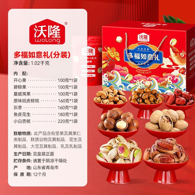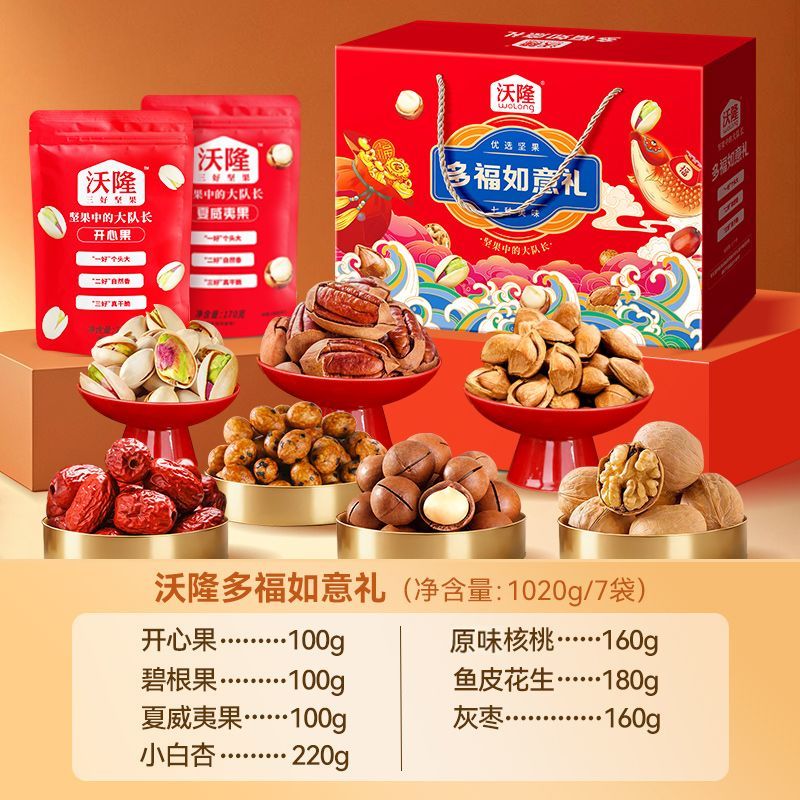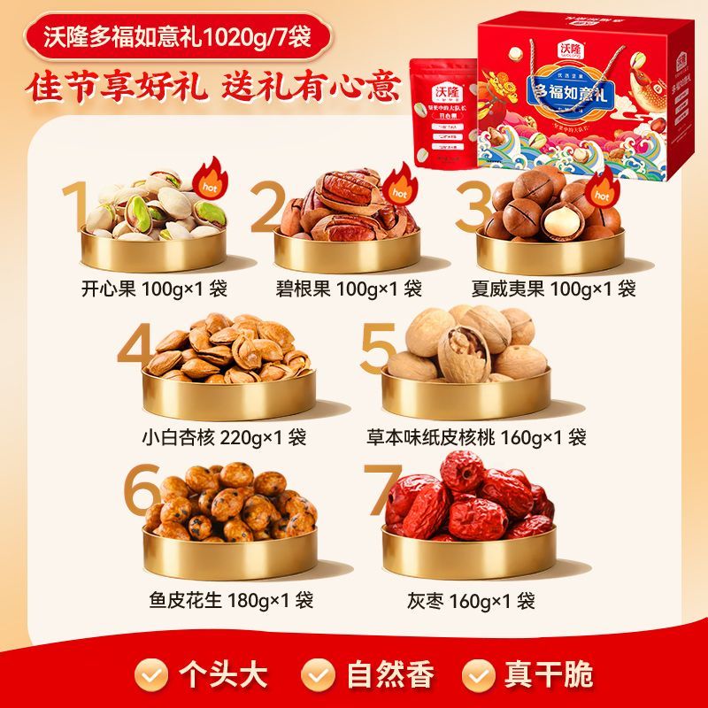 沃隆多福如意礼1020g*2盒混合坚果年货礼盒零食礼包坚果礼盒团购