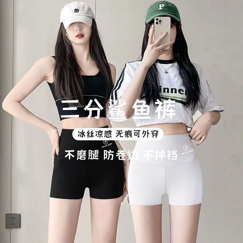 冰丝安全裤防走光女夏季薄款高腰收腹提臀打底三分瑜伽鲨鱼裤短裤